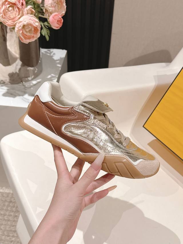 / 女 男+10 情侣款 Fendi 芬迪最新款 复古阿甘鞋 德训运动鞋 高级绒面皮面拼接打造,灵感来自复古,全新演绎经典,轻便、舒适、透气的四季必备单品 无论是搭