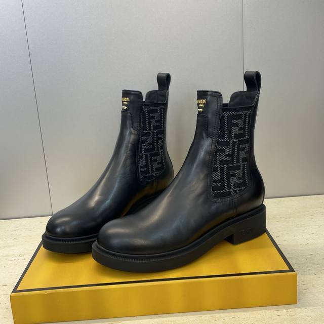 工厂p价p DDD Fendi 2025秋冬新款切尔西弹力机车女短靴 芬迪字母Logo五金扣厚底低跟圆头骑士军靴 DDD 材质:鞋面进口小牛皮+水染牛皮内里+原版开模防滑Tpu大底 DDD 跟高:2.5Cm DDD Size:35-40 40定制不退换 DDD