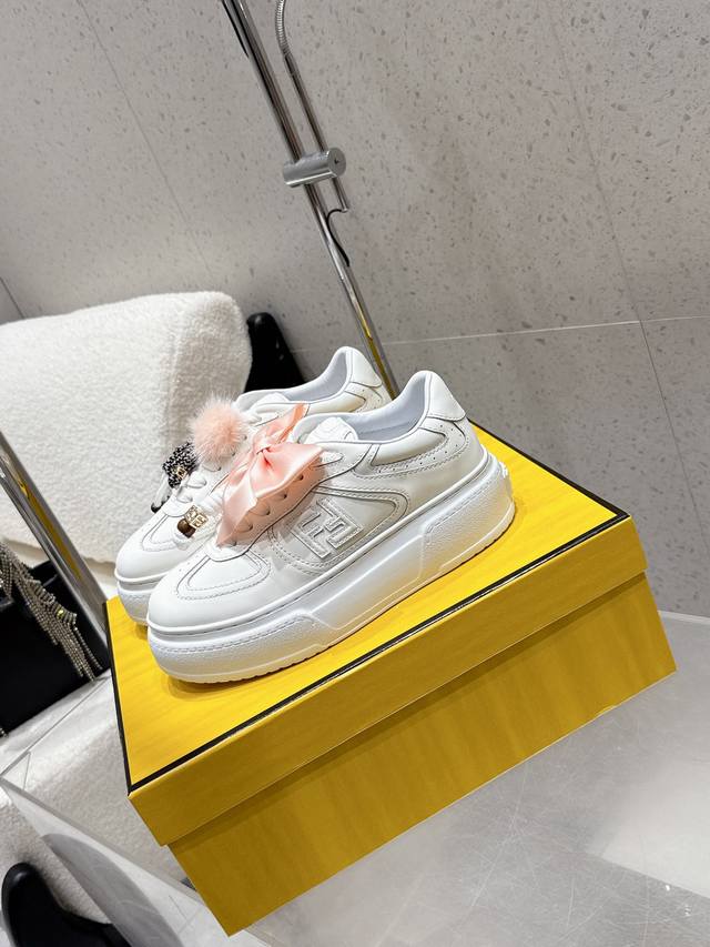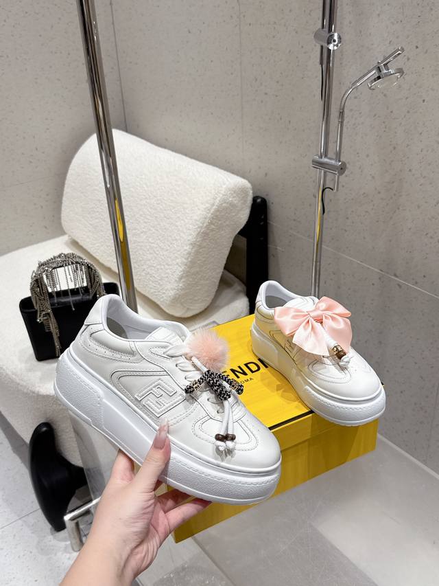 布面款 全皮 Fendi芬迪 最新款厚底板鞋休闲运动鞋 Fd 厚底Match 升级新款 全皮面拼接 新鲜血液注入加Ff复古的设计 超好看百搭 鞋面胶片 牛皮面拼