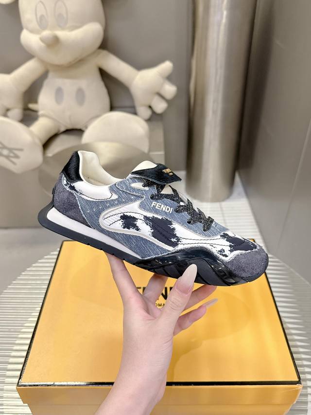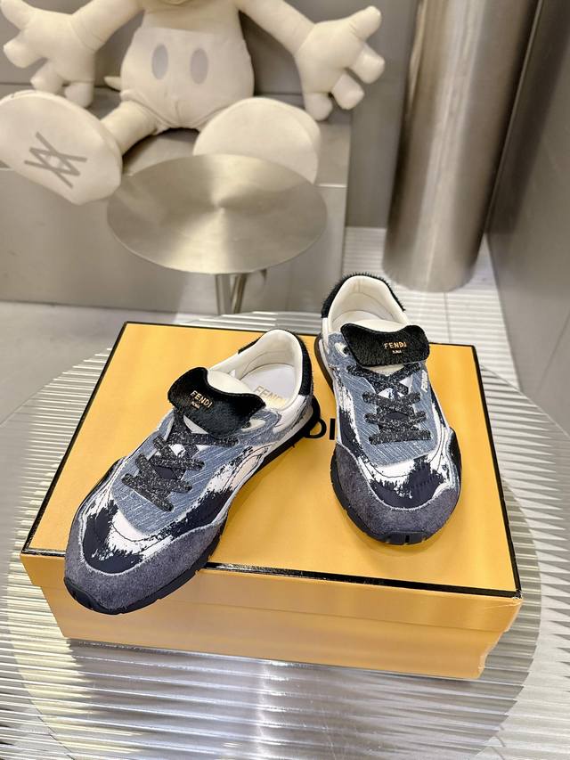 情侣款 芬迪新款复古风平底运动休闲鞋 DDD 鞋面是牛反绒+皮革拼接,自带做旧纹理,质感高级还显独特;鞋舌有Fendi标识,细节处藏着品牌辨识度。圆头+魔术贴搭扣,穿脱方便且适配不同脚型; DDD 鞋型偏宽松,对脚宽 脚胖包容度高,同时视觉显脚小;配色是低饱和复古色系,自带松弛的“老钱风”调性。鞋底是轻质橡胶底,软弹不累脚,日常通勤或者逛街都适配;风格兼容复古、休闲、轻熟风,搭牛仔裤、西装裤、连衣裙都不违和。 DDD 鞋面:牛皮 DDD 内里:羊皮 DDD 大底:原版开模大底 DDD 增高:3Cm DDD