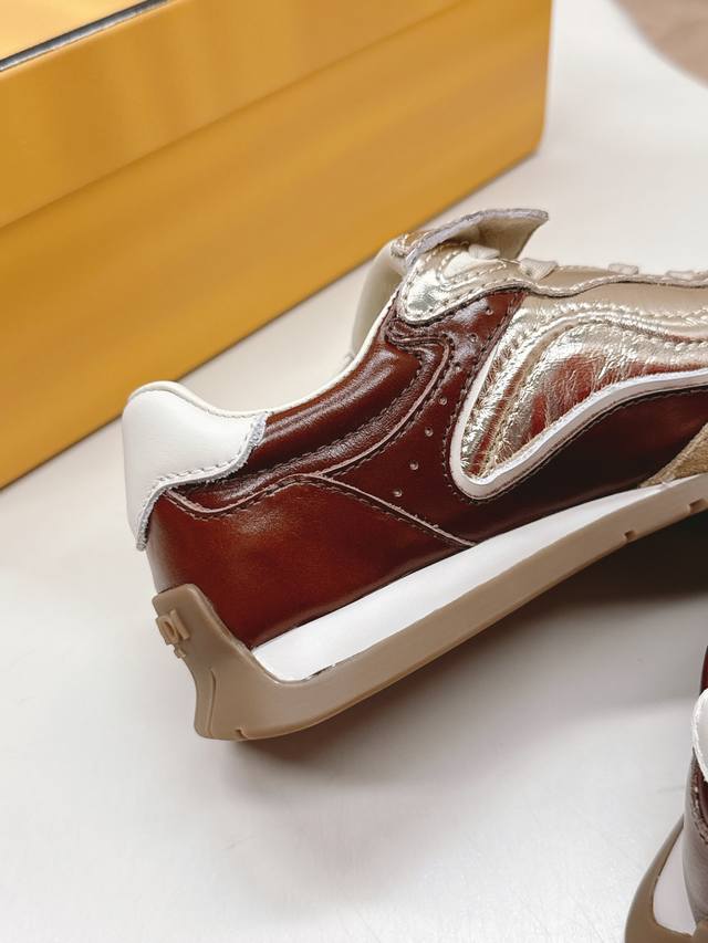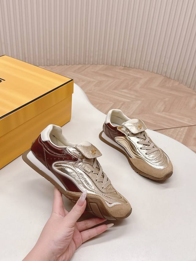 情侣款 Fendi 芬迪最新款 复古阿甘鞋 德训运动鞋 高级绒面皮面拼接打造,灵感来自复古,全新演绎经典,轻便、舒适、透气的四季必备单品 无论是搭配牛仔裤还是裙
