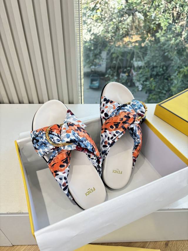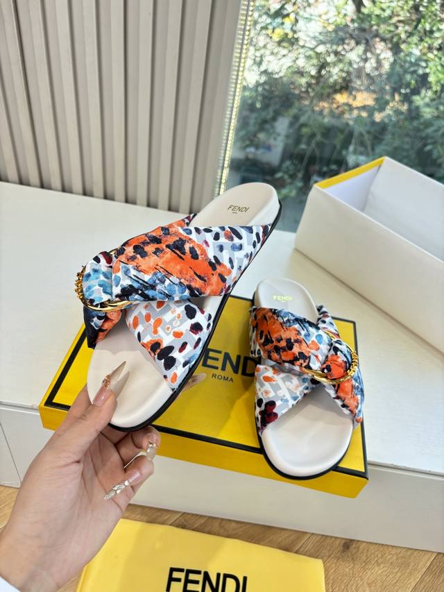 P330 Fendi最新爆款双带平底拖鞋,带Ff功能性搭扣,饰有Ff图案提花布料上点缀着不同形状大小是水晶钻饰,奢华感满满,35-45码