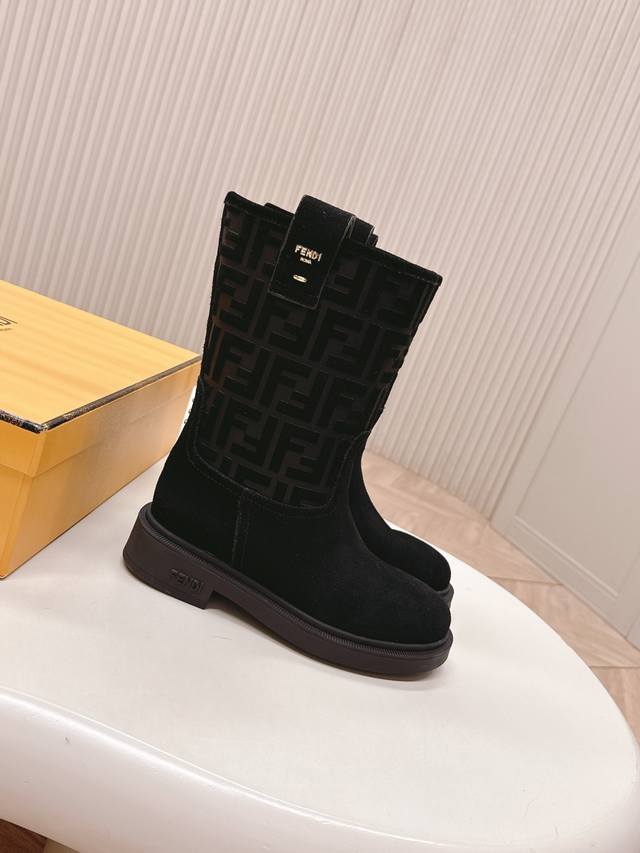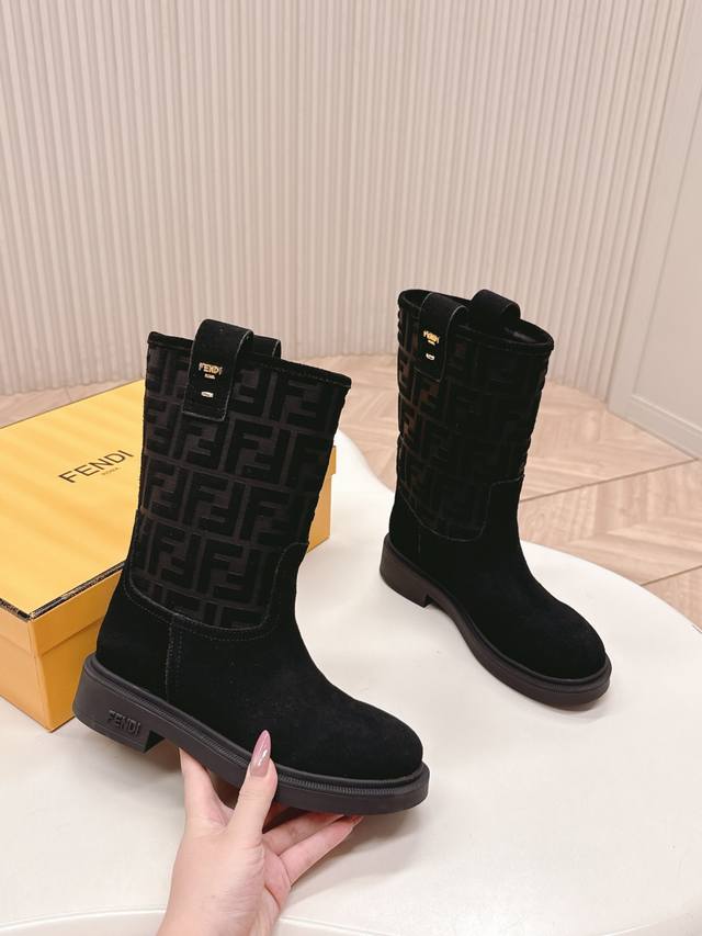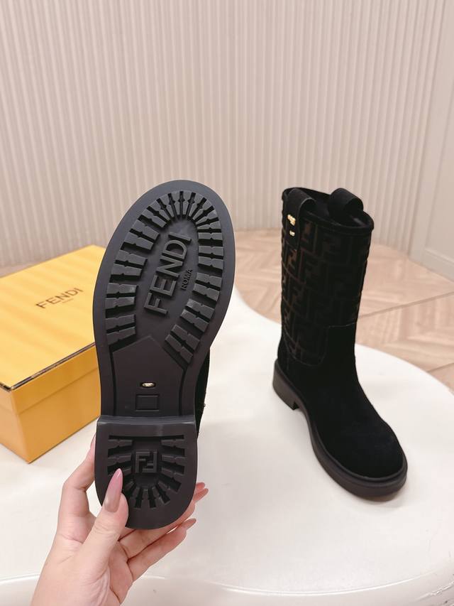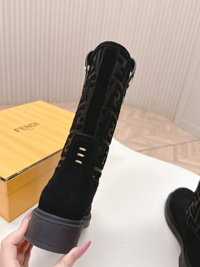顶级版本 Fendi 芬迪 25 秋冬 Ff字母直筒靴麂皮绒面一脚蹬骑士长靴厚底高靴...