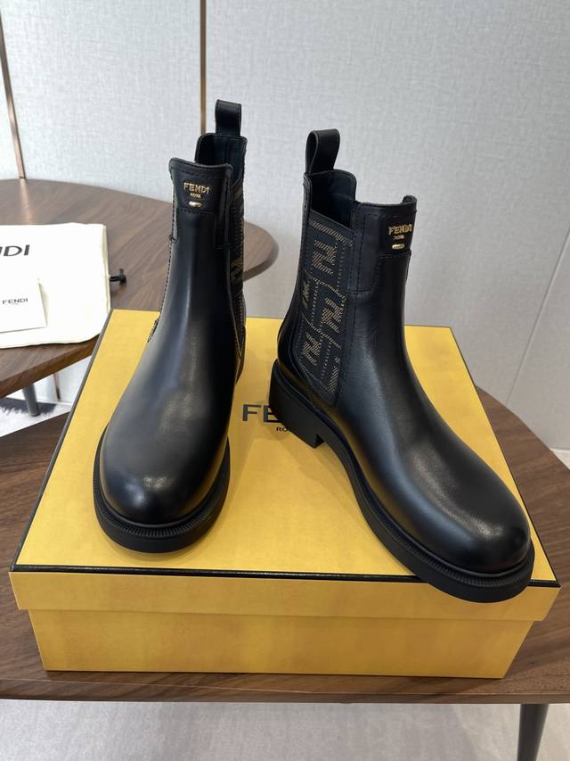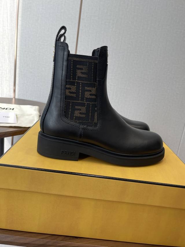 莞产Fendi 芬迪25新品Filo老花切尔西牛皮机车靴 把Fendi这双短靴锁死 经典老花+利落短靴型,直接把“高级松弛感”穿在了脚上! 黑色皮革自带酷飒气场