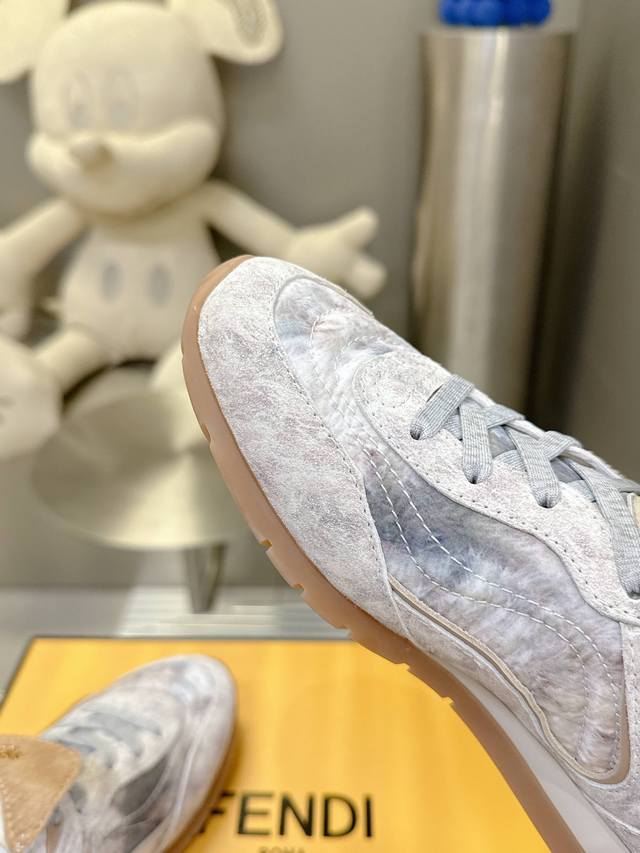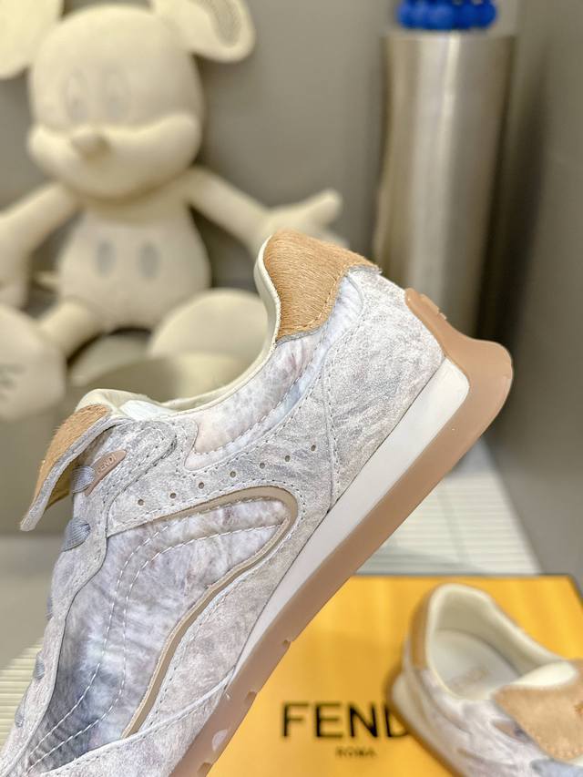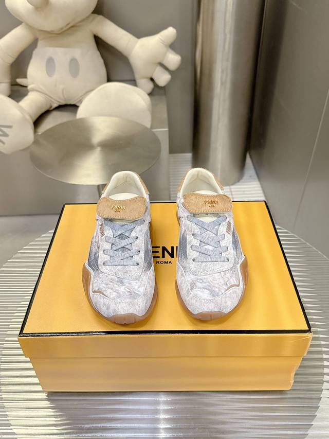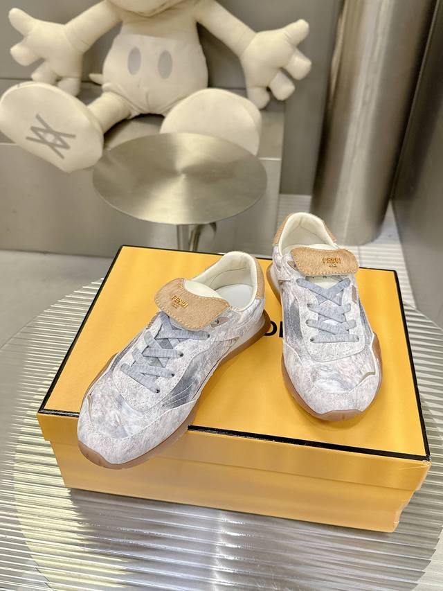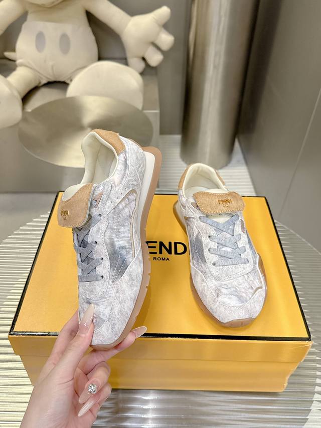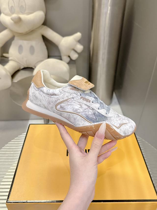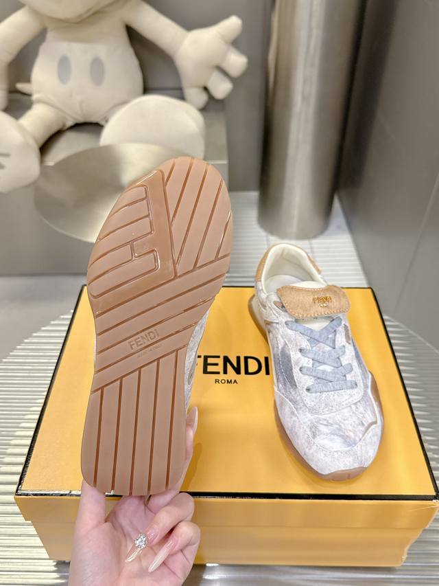 限女款 芬迪新款复古风平底运动休闲鞋 DDD 鞋面是牛反绒+皮革拼接,自带做旧纹理,质感高级还显独特;鞋舌有Fendi标识,细节处藏着品牌辨识度。圆头+魔术贴搭扣,穿脱方便且适配不同脚型; DDD 鞋型偏宽松,对脚宽 脚胖包容度高,同时视觉显脚小;配色是低饱和复古色系,自带松弛的“老钱风”调性。鞋底是轻质橡胶底,软弹不累脚,日常通勤或者逛街都适配;风格兼容复古、休闲、轻熟风,搭牛仔裤、西装裤、连衣裙都不违和。 DDD 鞋面:牛皮 DDD 内里:羊皮 DDD 大底:原版开模大底 DDD 增高:3Cm DDD