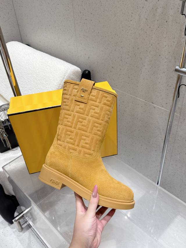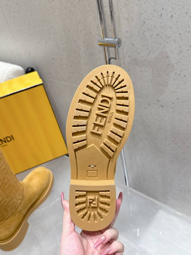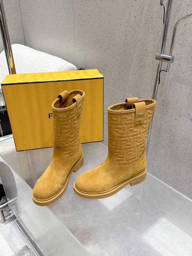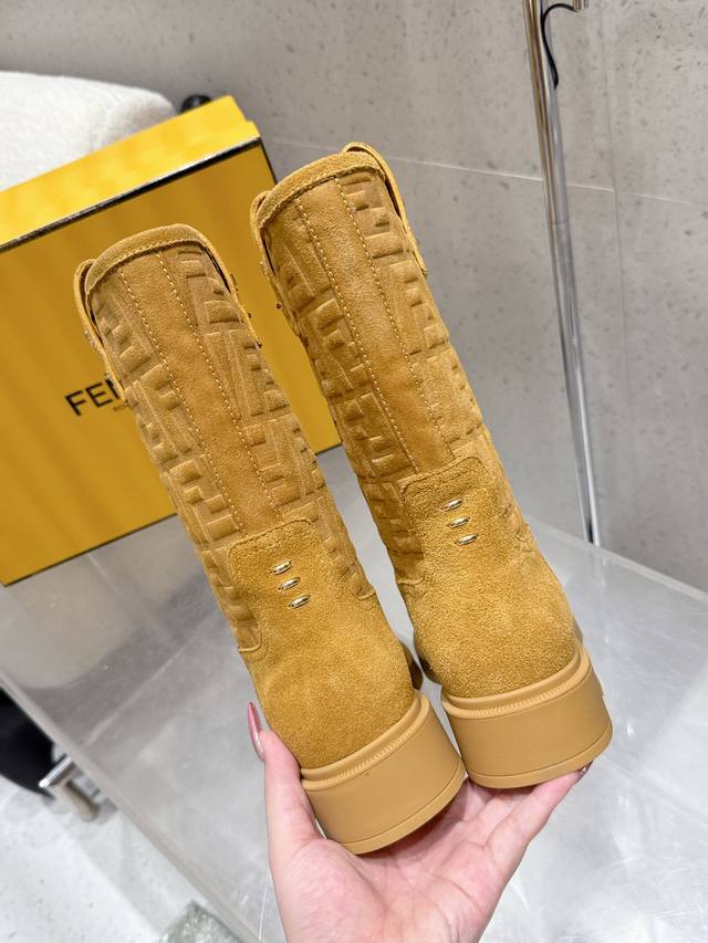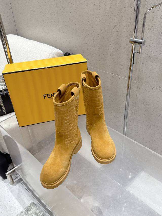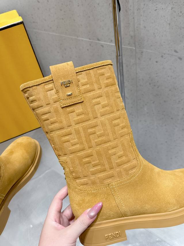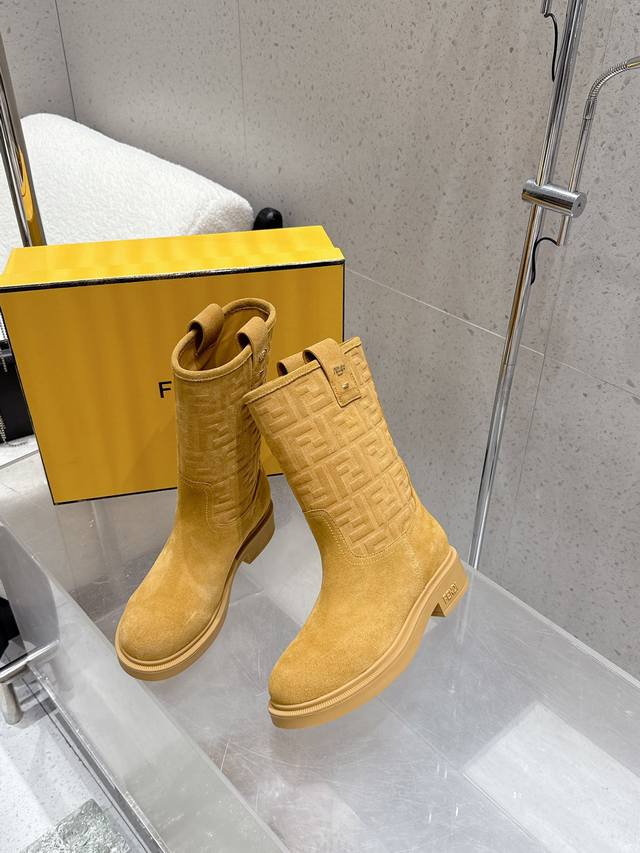 顶级品质 中筒 高筒 DDD 2025秋冬新款 Fendi 芬迪爆火Ff字母直筒靴 中筒靴 麂皮绒面一脚蹬骑士长靴厚底高靴 DDD 采用品牌标志性的Ff老花压纹,辨识度极高;材质为质感细腻的麂皮,呈现出高级的哑光效果;靴型是及膝长筒设计,利落又显气场,鞋跟为低跟或平底,兼顾了时尚与舒适。 DDD 与格纹、复古组合,再配上一件呢子,像深咖色款搭配棕色格纹裙和卡其色,满满的复古韵味。搭配西装裤和简约的、西装,黑色款就很适合,能塑造干练的职场形象。 DDD 鞋面:高丝光牛反绒 特殊压印工艺 DDD 内里垫脚:牛