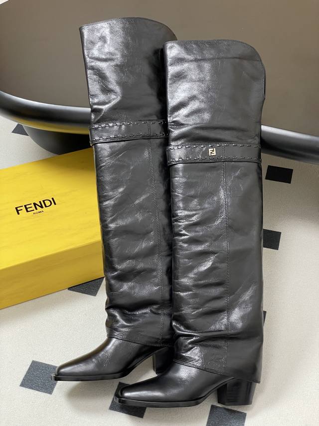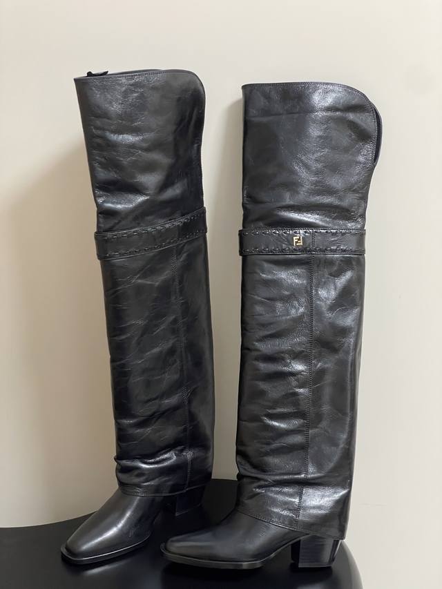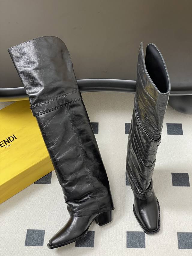 2025秋冬新款 Fendi 芬迪爆火裤管靴 翻口高筒过膝长靴