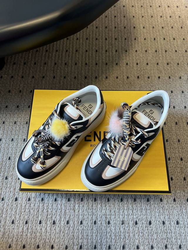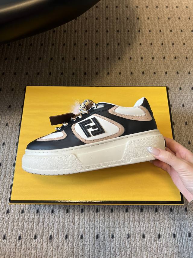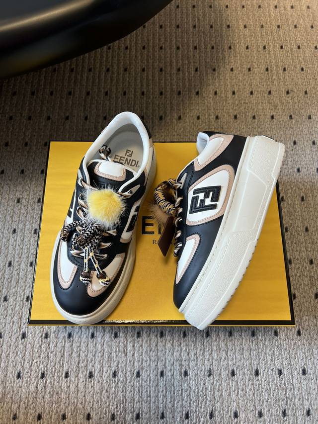 顶级品质 DDD Fend*25Ss厚底松糕鞋运动休闲鞋 DDD 设计鞋型是厚底松糕款,增高显腿长,同时鞋身线条宽松,是当下流行的“面包鞋”慵懒感;搭配可拆卸装饰,可以自由组合风格,甜酷 温柔切换灵活;采用皮质牛仔拼接,质感挺括耐穿; DDD 既保留了奢侈品牌的精致感,又通过毛绒、蝴蝶结元素增加了“甜妹”属性,适合日常休闲、轻通勤等场景,搭配裙子 牛仔裤都很出片。 DDD 鞋面:牛反绒 DDD 内里:羊皮 DDD 大底:原版开模大底 DDD 增高:5Cm DDD Size :35-41码 40码定制不退换
