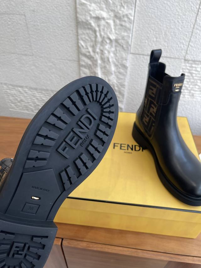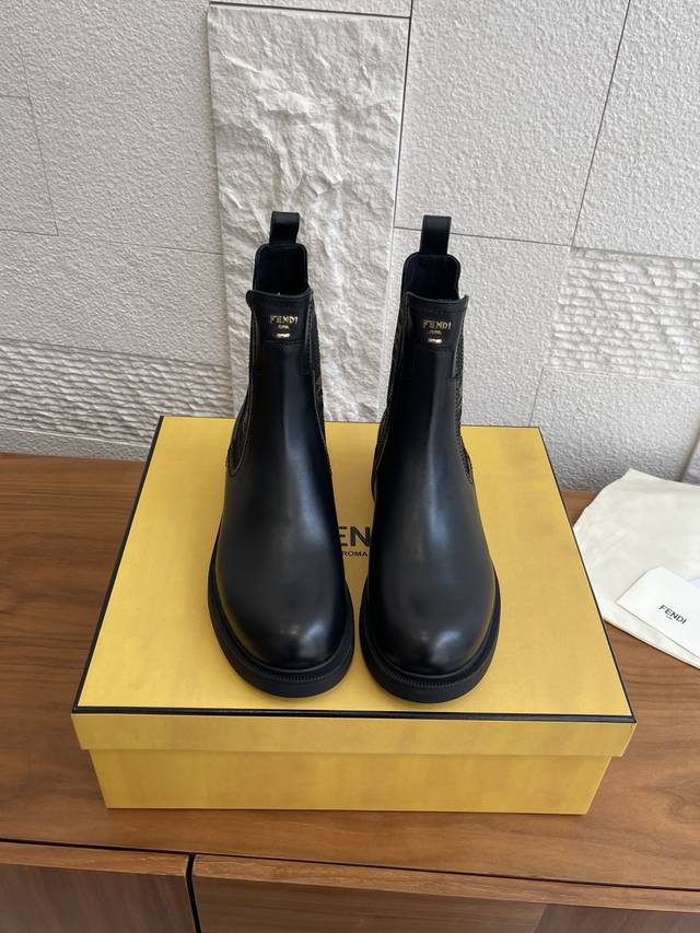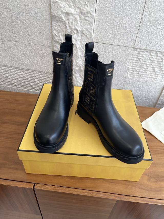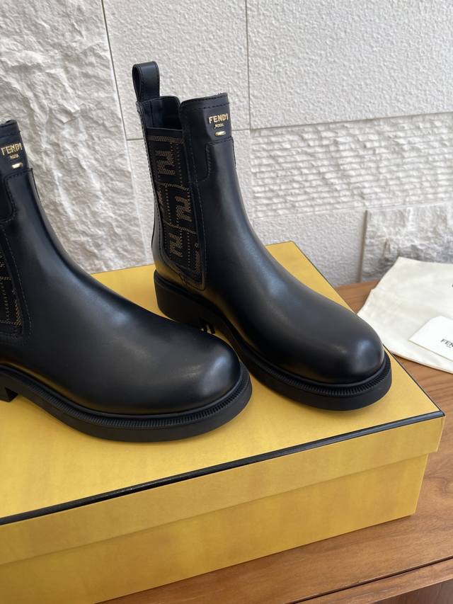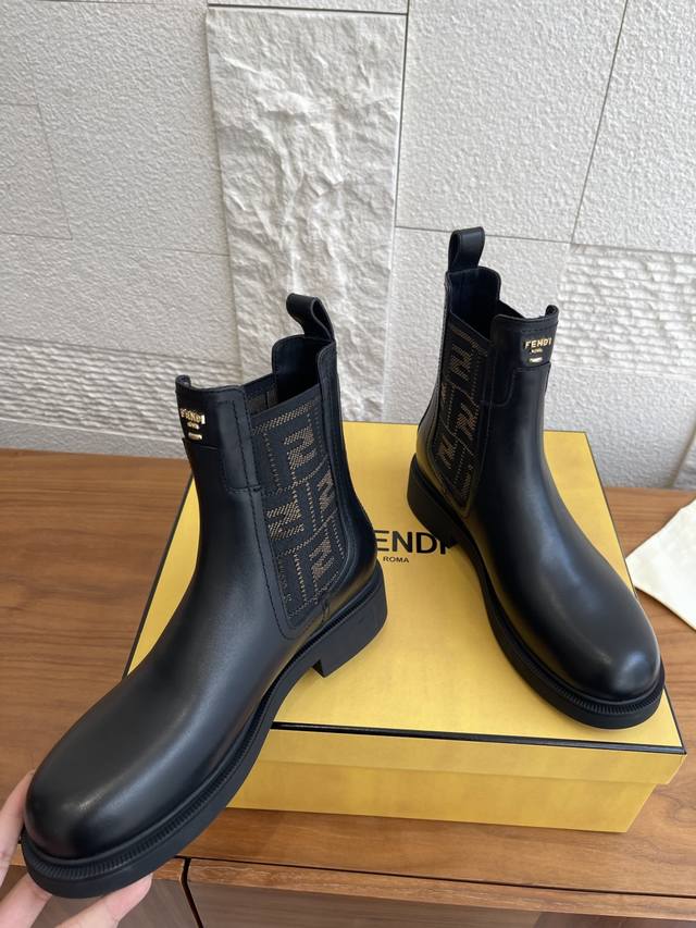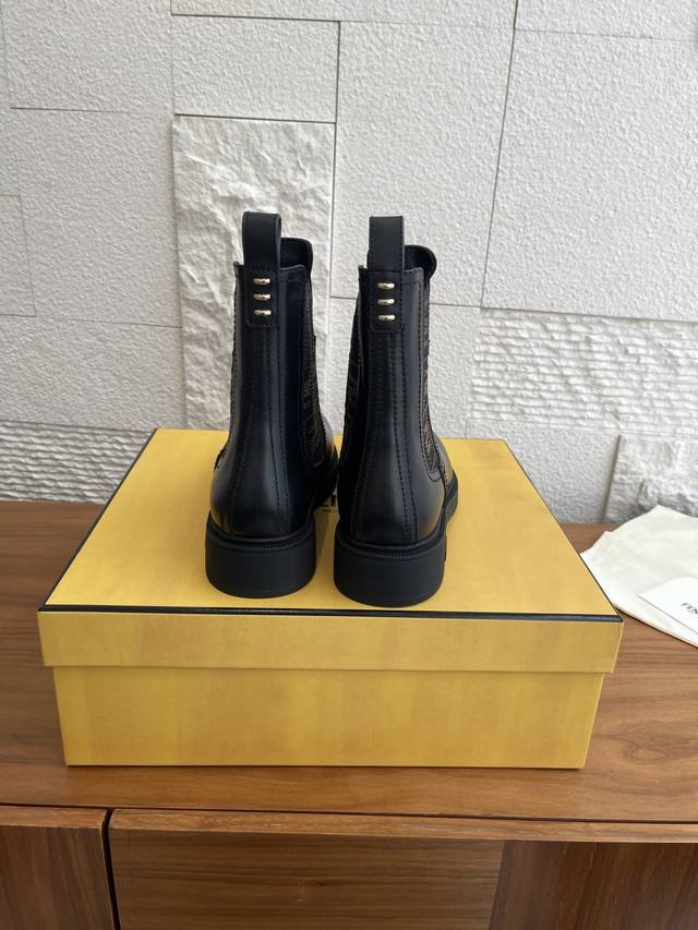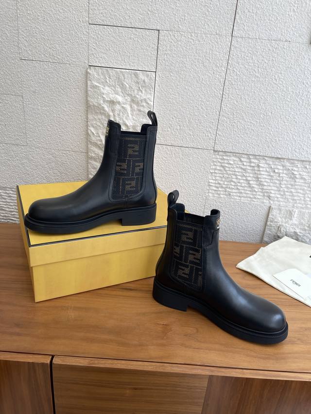 顶级版本: 莞货 Fendi 芬迪 2025 早秋新款 Filo 黑色皮革和Ff布料机车靴 Fendi Filo机车靴,圆头,侧面有松紧嵌饰。黑色皮革材质,饰有