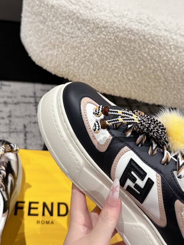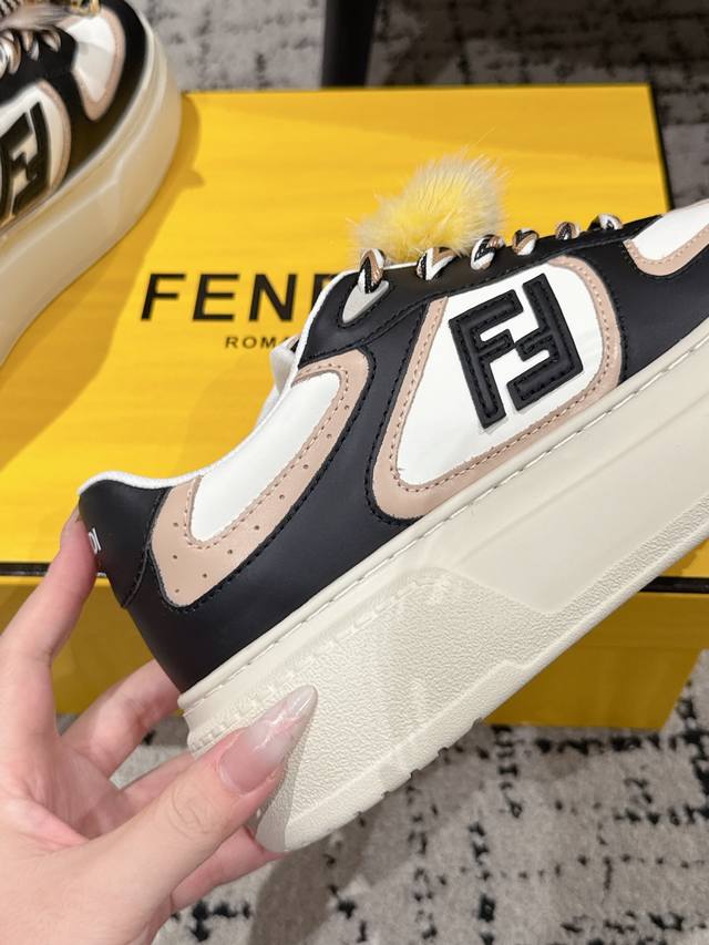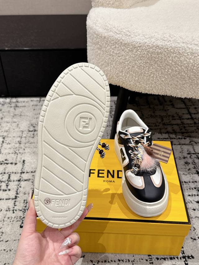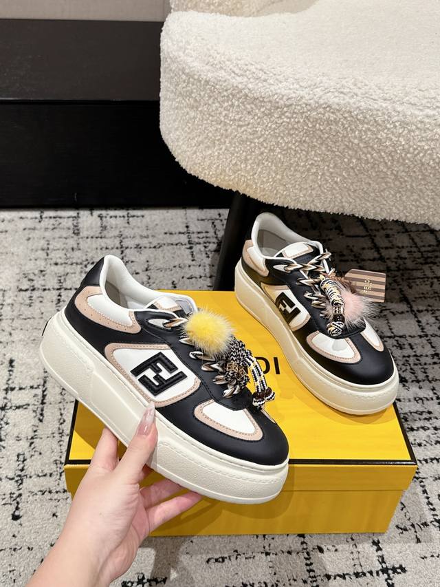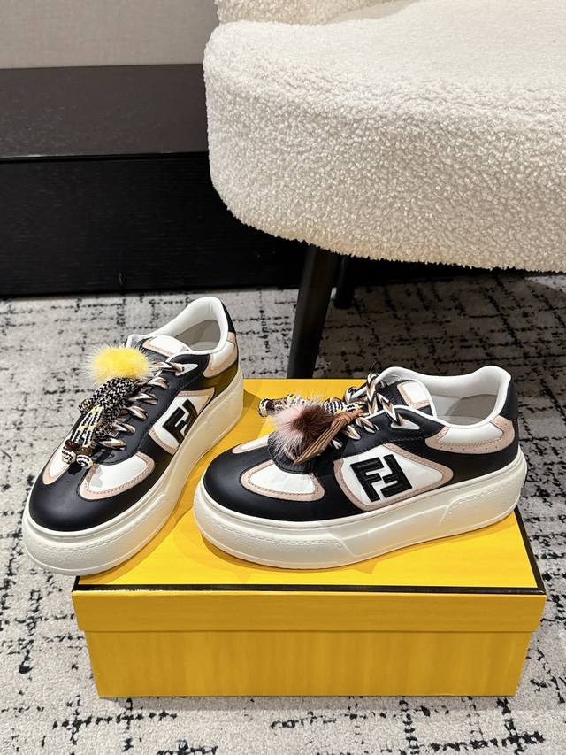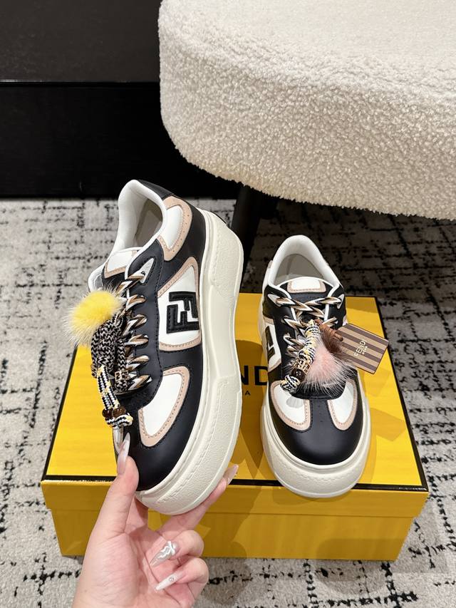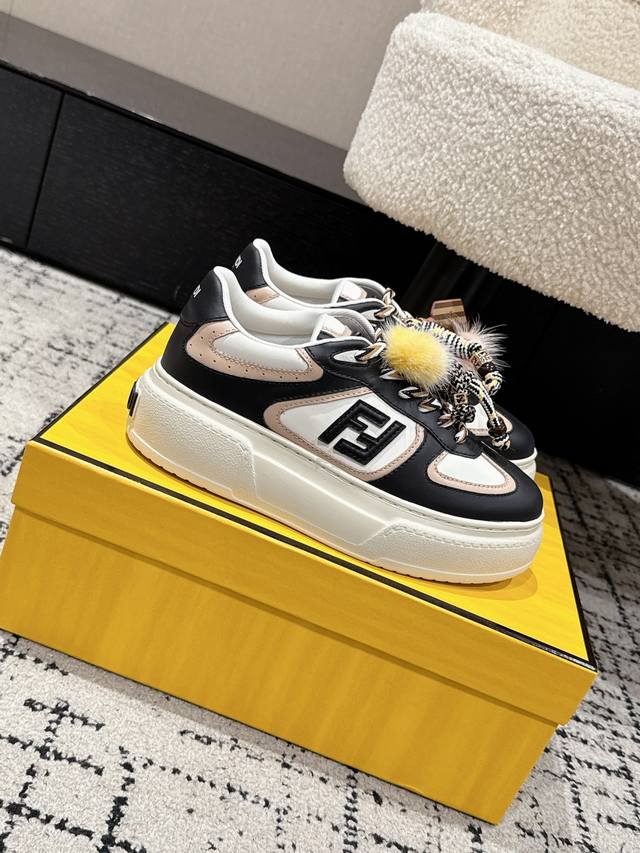 顶级版本 DDD Fendi芬迪 25 Match platfo 饼干鞋面包鞋 吊饰 厚底圆头系带 板鞋 DDD 原版购入开发 做货 设计师Kim Jones打造的首款运动鞋Fendi Match 和Lv驴牌的Trainer篮球运动鞋 鞋型差不多 添加了Ff复古的设计 鞋面采用麂皮和网布拼接组合 侧面凸起的双F Logo内里采用毛巾绒里 上脚超级柔软 轻便 舒适搭配卫衣 少年感满满 DDD 面料:原版定制进口头层牛皮 网布 DDD 内里:进口定制透气网里 DDD 鞋底:原版开模超轻发泡材质 DDD 底厚:
