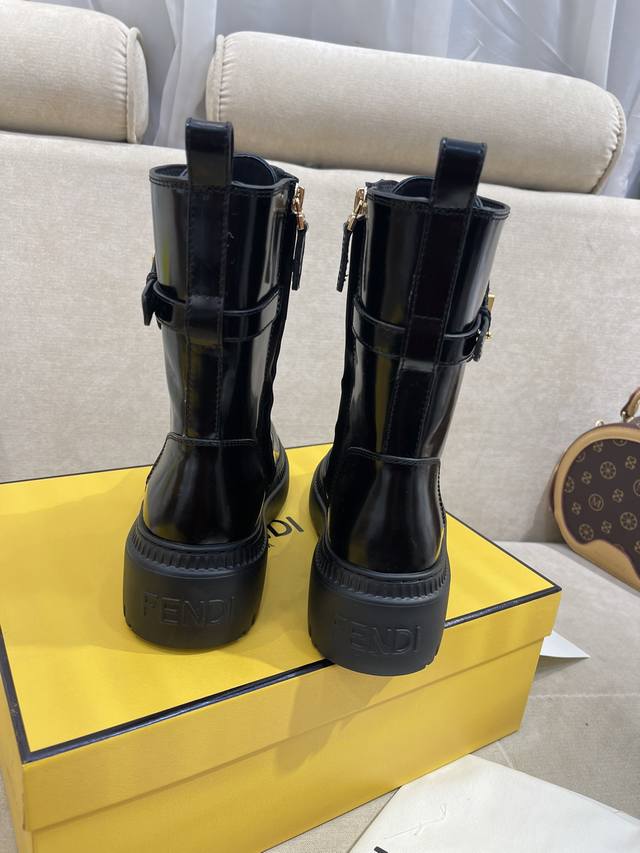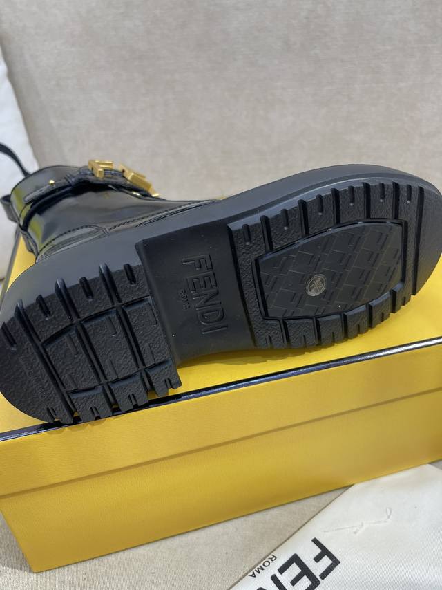 / 顶级版本Fendi 芬迪秋冬最新马丁靴 原版高端定制 Fendigraphy马丁靴以抛光亮面牛油皮制作,风格经久不衰,系带系统稳固安全,可轻松搭配秋冬着装,这款