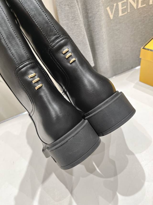高版本出厂 Fendi芬迪F029 2025Ss秋冬新款中靴直筒靴 高筒靴 芬迪又出美靴啦 头层牛皮面料搭配F家经典老花、牛皮位全油边、后包高周波压印 机车造型