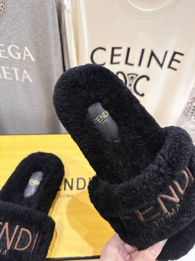 / 高版本出厂 Fendi 芬迪2025Ss秋冬新款居家平底毛毛拖鞋,真是好玩好看好萌哒原版复刻精致电绣鞋面。进口顶级羊羔毛材料,蓬松柔软,不易变形。区别于市场次级