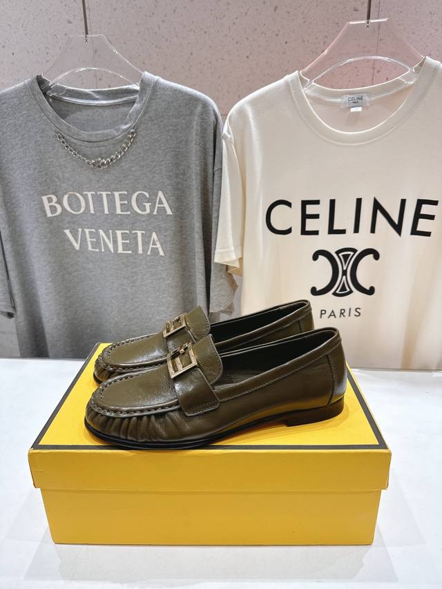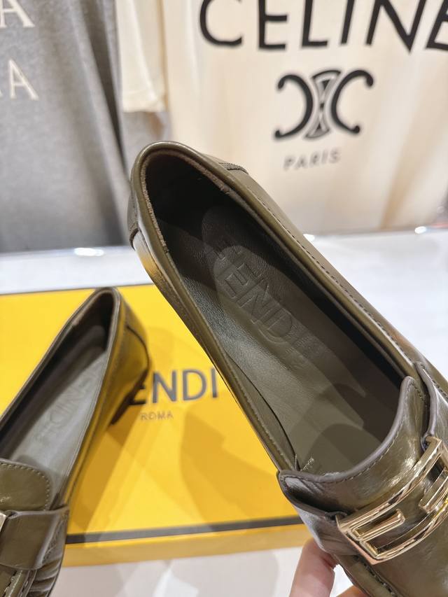 高版本出厂 Fendi 芬迪F013 2026Ss早春新款搭扣乐福鞋休闲鞋单鞋 经典扣饰自带贵气Buff,踩上脚秒变精致女人,通勤约会都百达,橄榄绿好特别,时尚