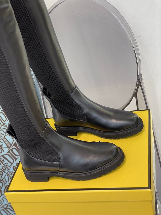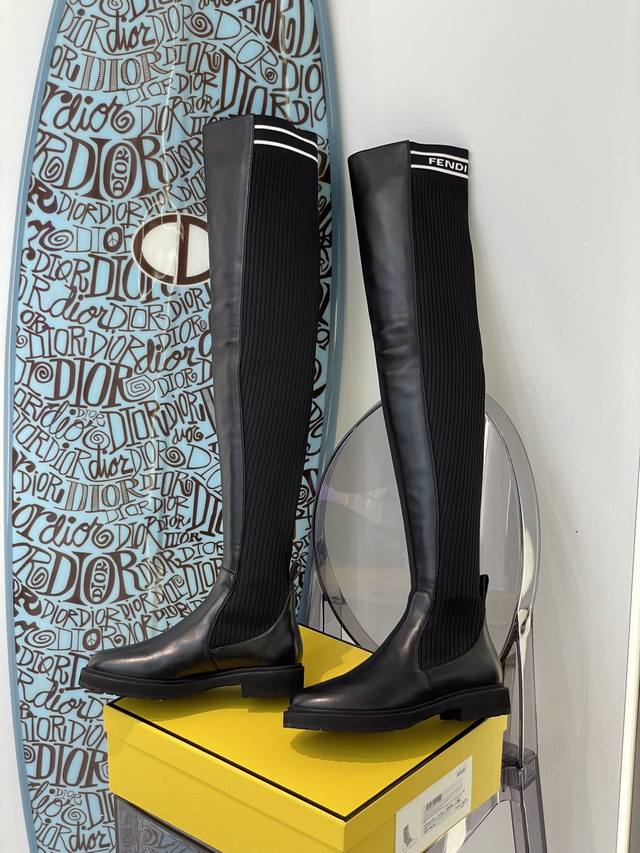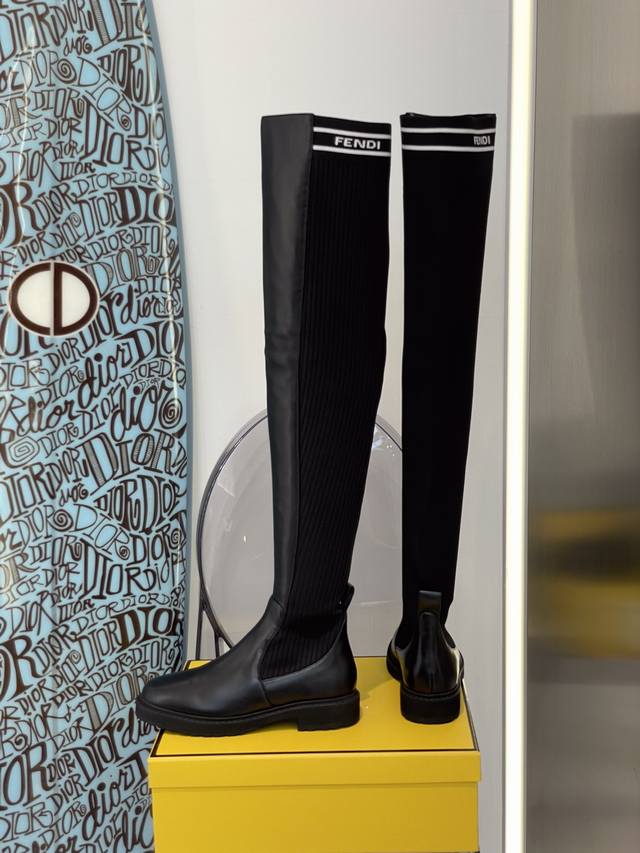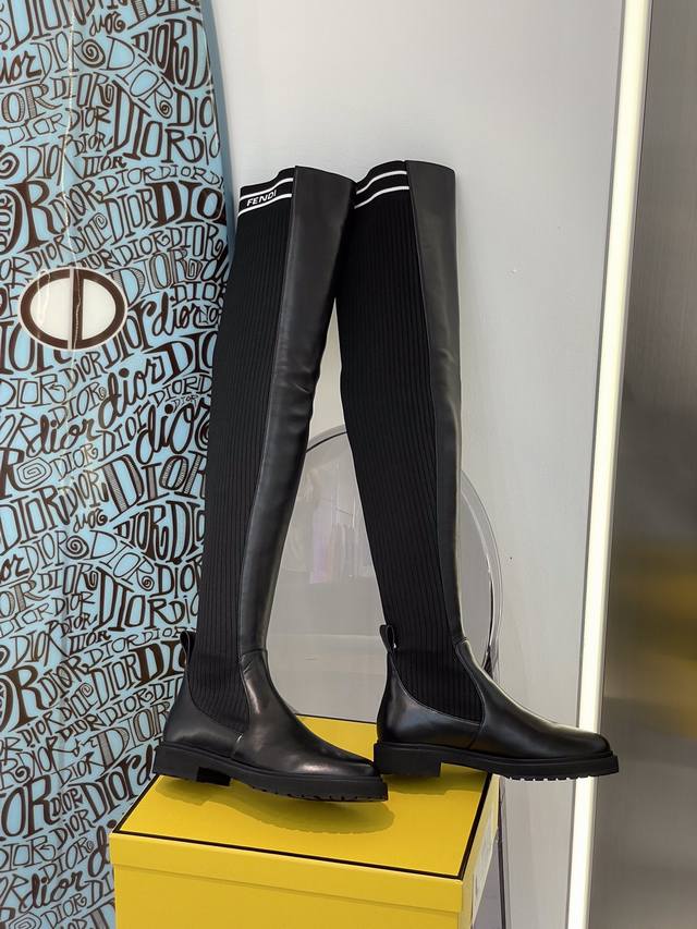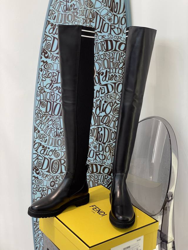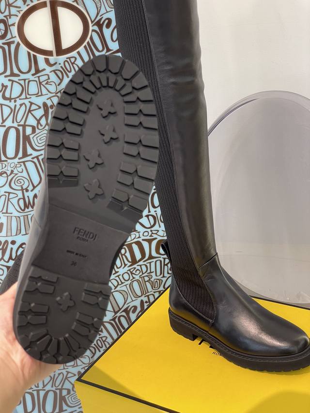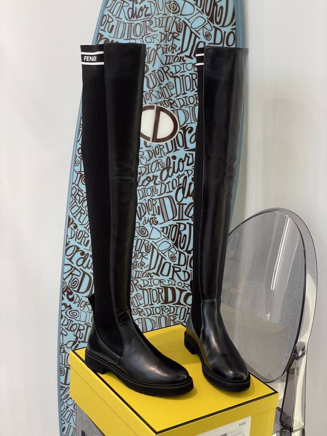 Fendi家经典弹力过膝靴 ,下半身消失神器! 甄选小牛皮搭配F老花飞织靴筒,鞋底很轻,兼具舒适度与时髦! 顶级品质35-41 40.41定制不退换