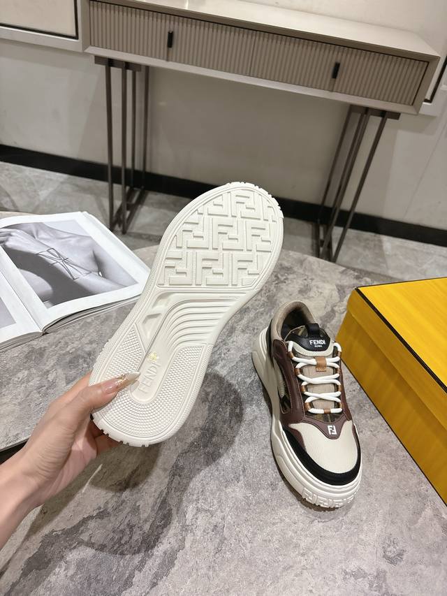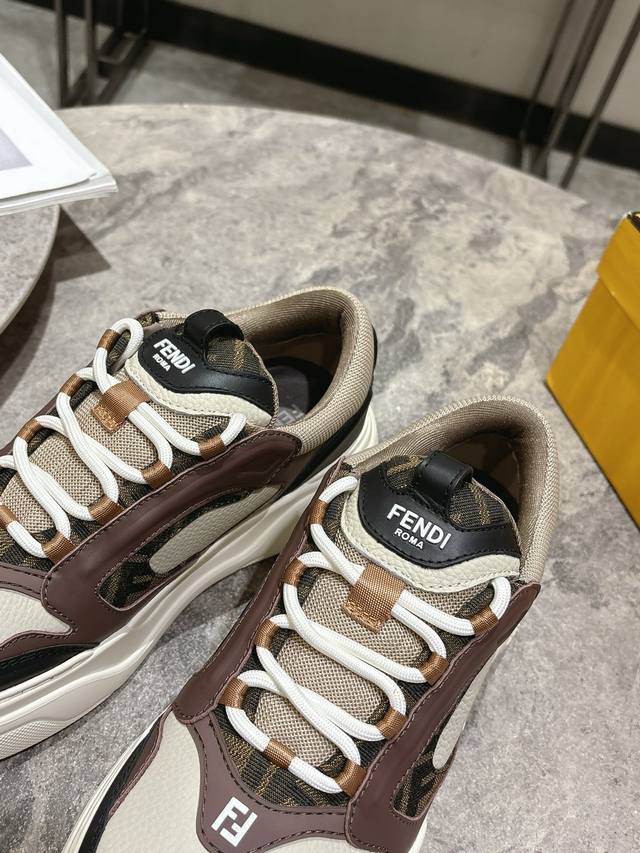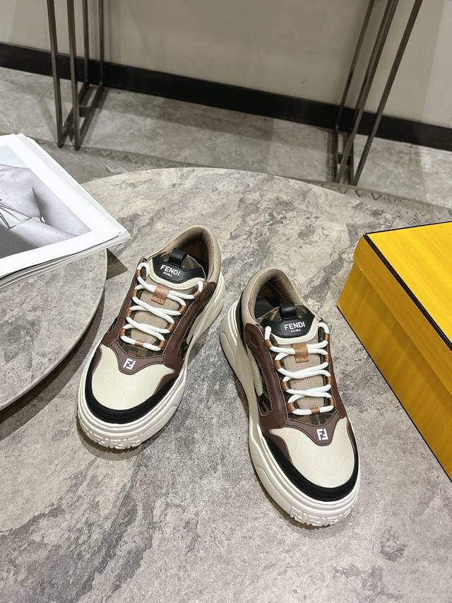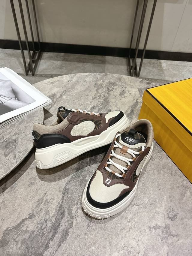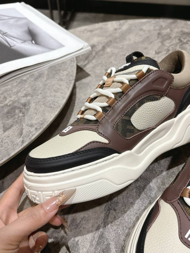 Fendi芬迪春夏新款△男士系带休闲运动板鞋 牛皮拼接定做网面制作鞋面 原版透气网里 独家私模大底 Size:男39-44 45定做不退换