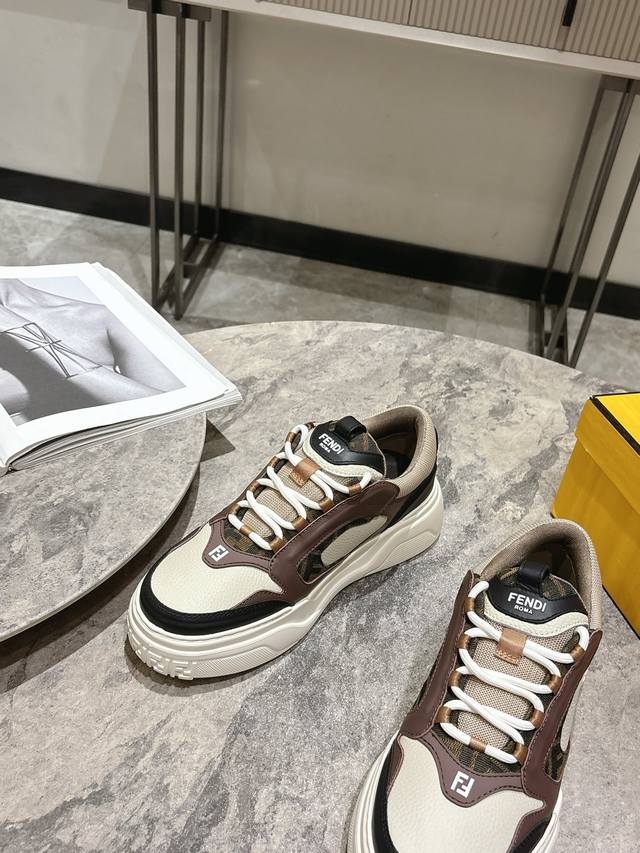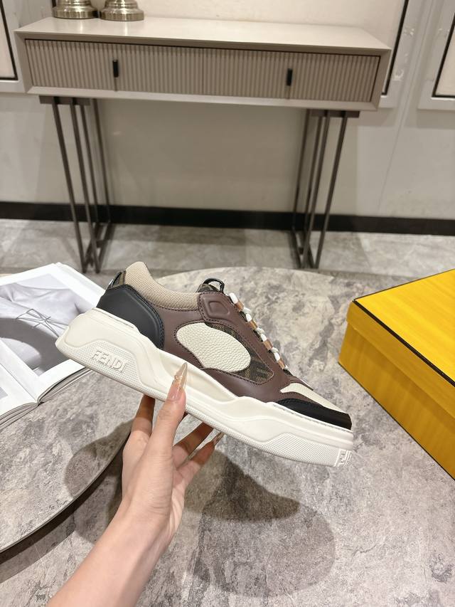 Fendi芬迪春夏新款△男士系带休闲运动板鞋 牛皮拼接定做网面制作鞋面 原版透气网里 独家私模大底 Size:男39-44 45定做不退换 DDD