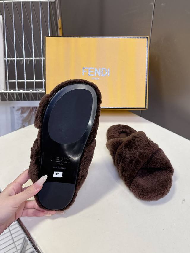 Fendi芬迪秋冬新款毛毛拖 每逢秋冬来临 毛拖是必不可少的单品 不仅足够保暖 还能拥有舒适的触感无论搭配什么都有种漫不经心的时髦纯羊毛有用手拨开是厚厚实实的 份量感足 内里垫脚真羊毛 软软的脚感我爱了 意大利真皮大底Size:35-41 40 41定制 DDD