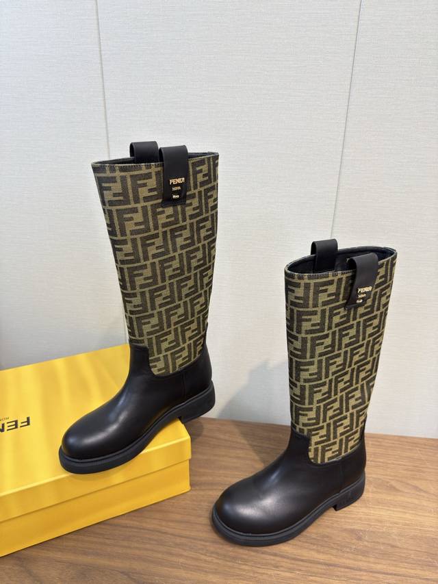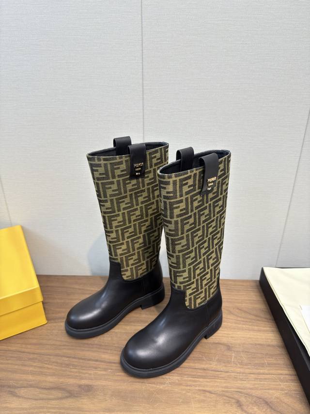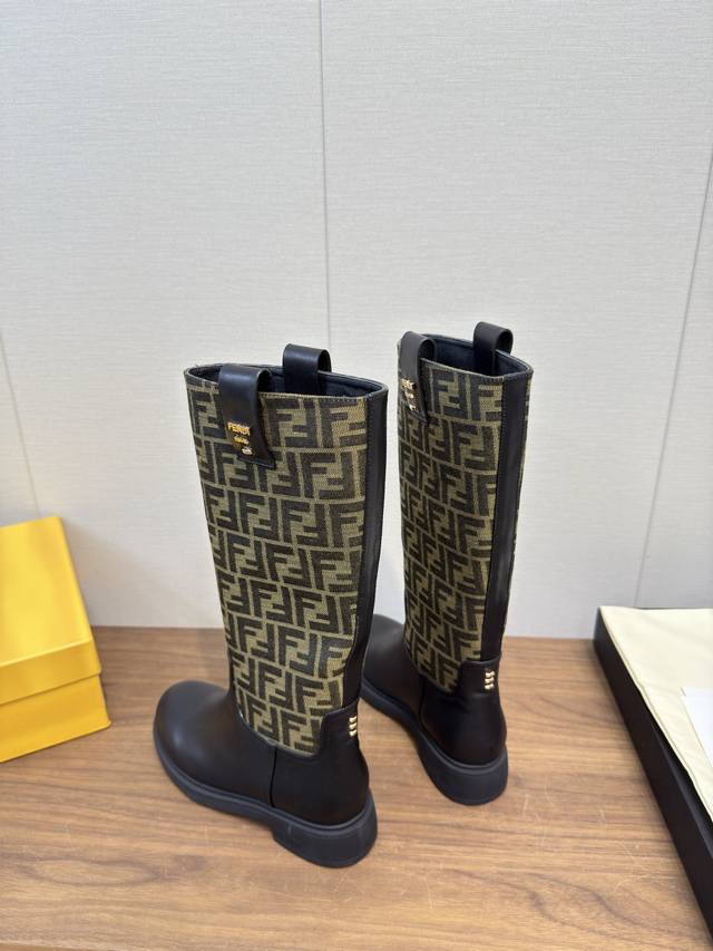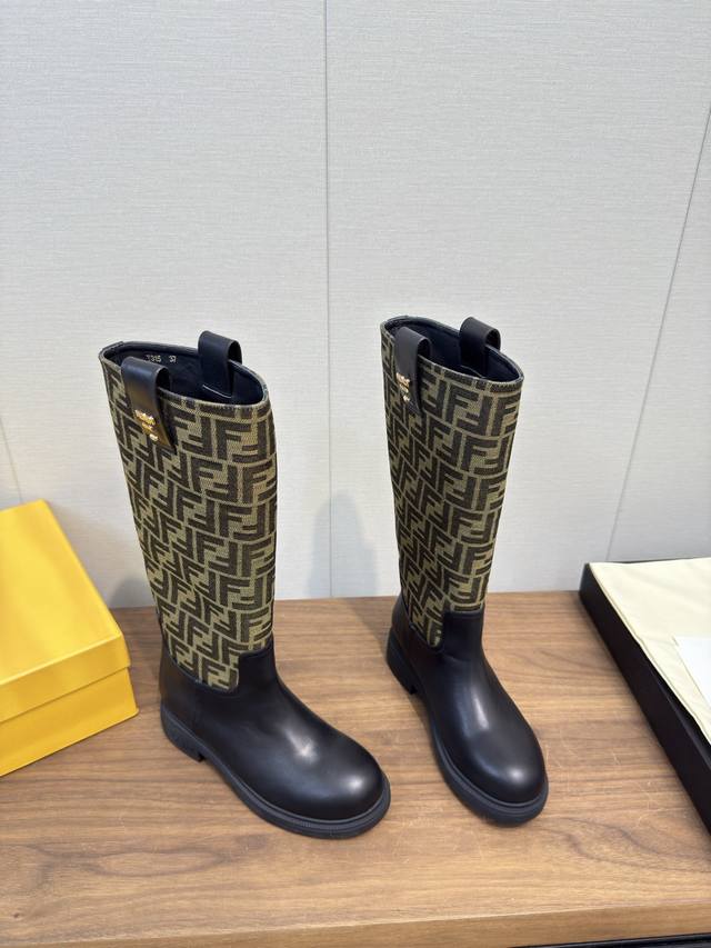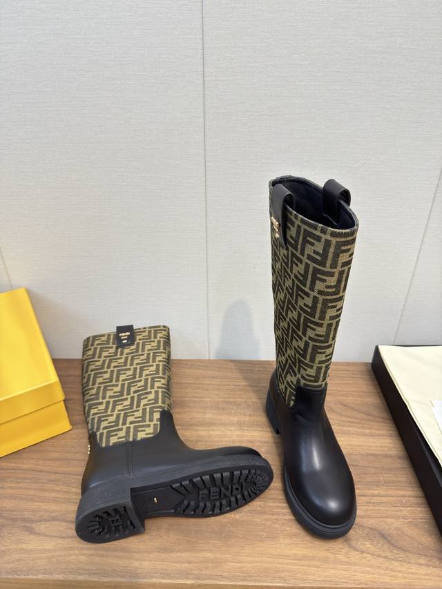Fendi芬迪2025 Ss秋冬新款中靴直筒靴 高筒靴 长靴 老花布 芬迪又出美靴啦 头层牛皮面料搭配F家经典老花、牛绒压花 牛皮位全油边、后包高周波压印 机车造型时尚前卫,上脚非常舒适、内里羊皮 耐磨绒组合大底、大底厚度3.5Cm原版全套极好看,上脚炒鸡显瘦呀! 冬季必备决绝子单品! 码数:35-41,40.41订做不退换