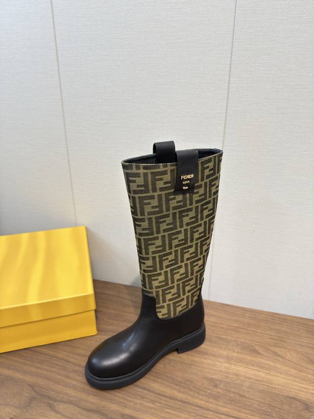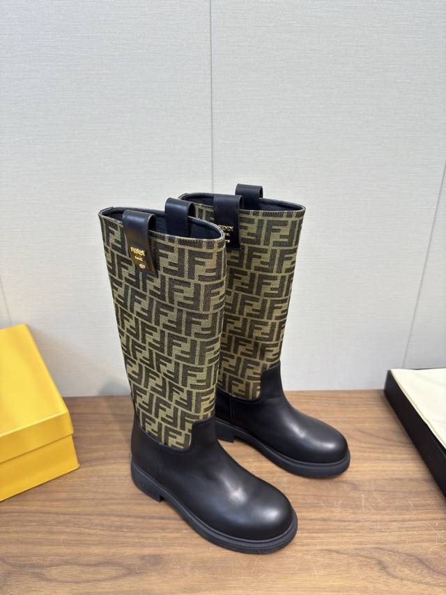 / Fendi芬迪2025 Ss秋冬新款中靴直筒靴 高筒靴 长靴 老花布 芬迪又出美靴啦 头层牛皮面料搭配F家经典老花、牛绒压花 牛皮位全油边、后包高周波压印 机车