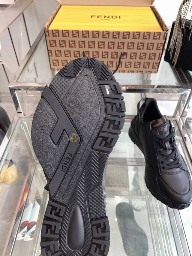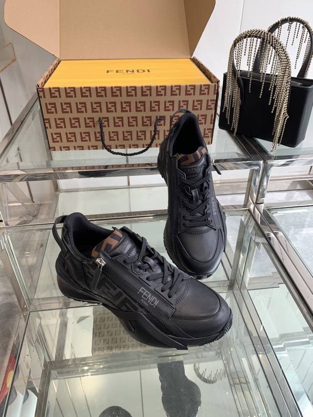 Fendi 芬迪 25Ss春夏新品Flow 男士一脚蹬运动鞋Fendi春夏新款男鞋 Fendi时尚Flow 新色来袭 潮流感十足 优质面料 舒适耐穿 行走间尽显独特品味 轻松成为街头焦点 搭配松紧带、侧拉链,刻有F的波纹鞋底 鞋跟饰有凸纹Fendi Flow字样 黑色麂皮混合材质 Ff图案鞋舌 超轻耐磨Eva大底 码数:39-46 45 46定做