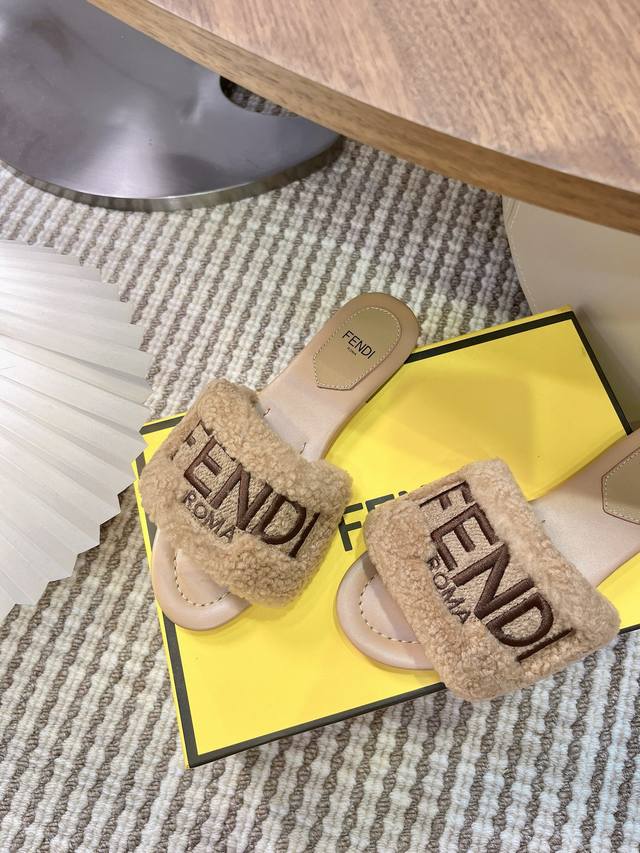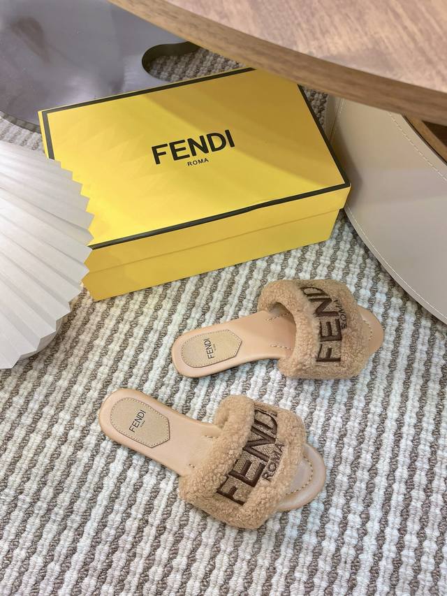 / Fendi 芬迪2025Ss秋冬新款居家平底毛毛拖鞋,真是好玩好看好萌哒 原版复刻精致电绣鞋面。进口顶级羊羔毛材料,蓬松柔软,不易变形。区别于市场次级材料,大底