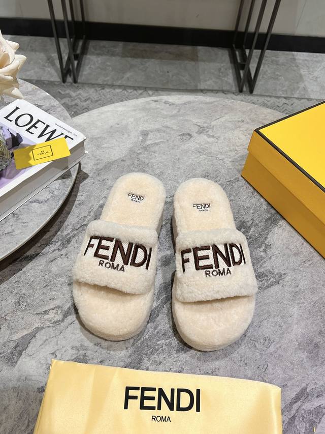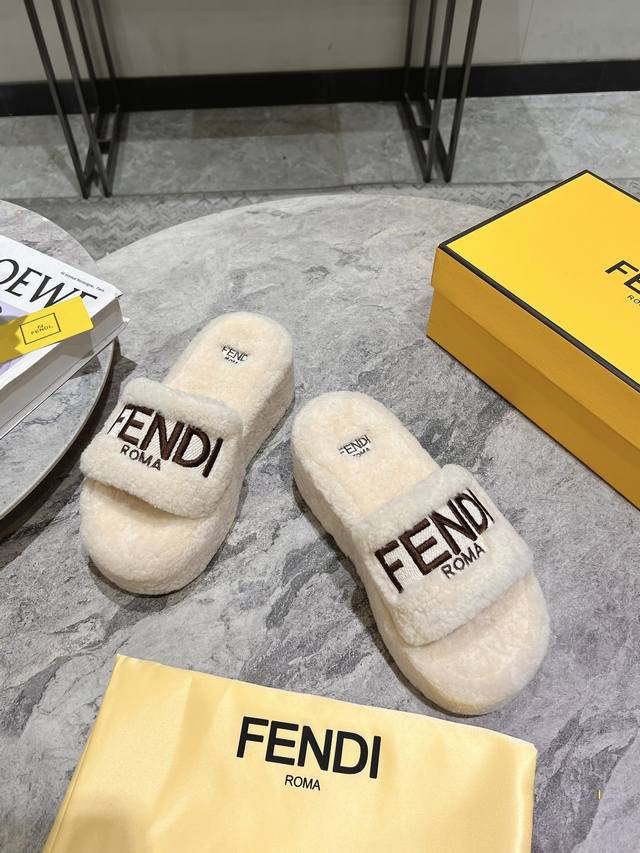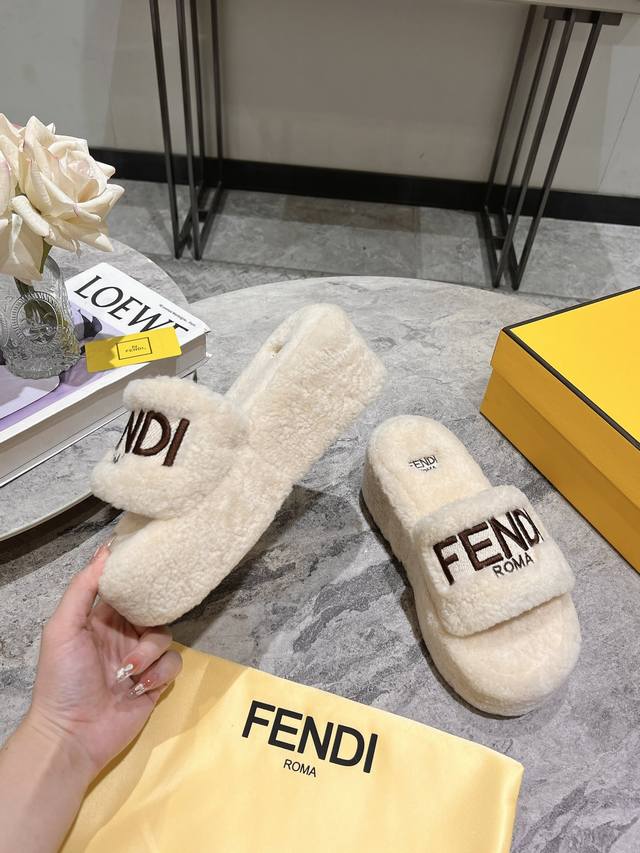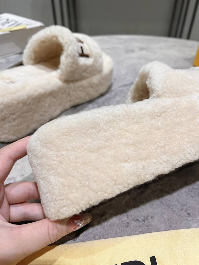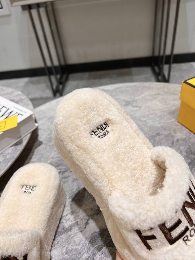 Fendi~Fw25 New Arrival~ 芬迪羊糕毛拖鞋新品,人见人爱的呀,太可爱了 时髦度与舒适度双双在线,公主风呀 鞋面品牌Logo电绣加持,真材实料