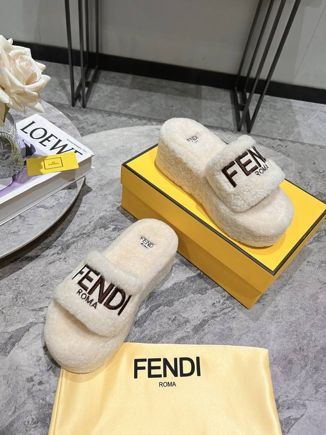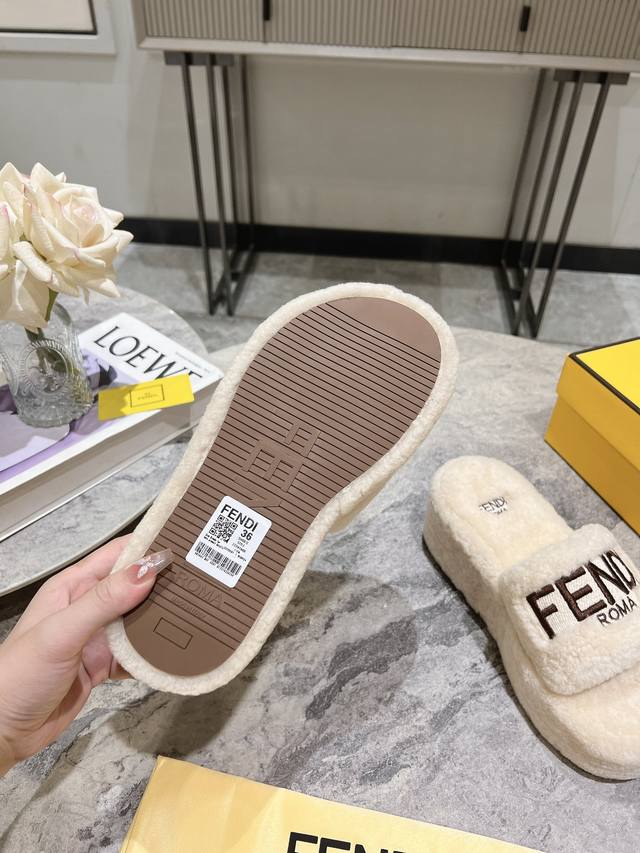 Fendi~Fw25 New Arrival~ 芬迪羊糕毛拖鞋新品,人见人爱的呀,太可爱了 时髦度与舒适度双双在线,公主风呀 鞋面品牌Logo电绣加持,真材实料的,冬日绝配 鞋底大概5Cm厚度,增高舒适 Size:35-39 40定做