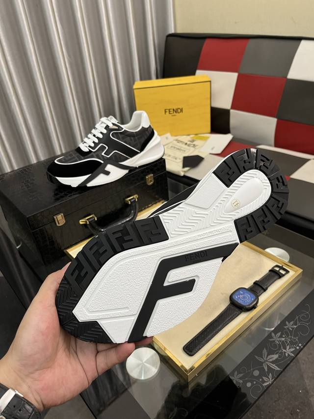 出厂价Pp: 芬迪.Fendi独特现代风运动鞋。专柜代购休闲鞋 意大利进口原版透气飞织网面 拒绝脱色磨脚 鞋底:原厂特供原版底,超酷 法国懒人风格设计 原单品质
