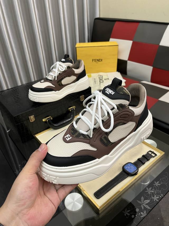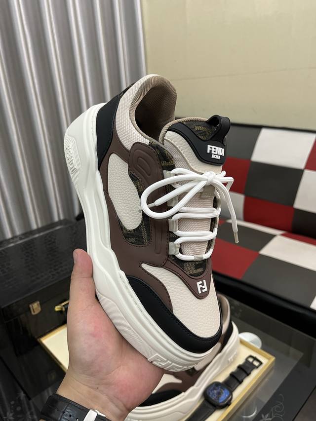 FFF 出厂价Pp: Fendi芬迪2025新色系列板鞋休闲运动鞋 Fd Match 升级新款 全皮面拼接 新鲜血液注入加Ff复古的设计 超好看百搭 鞋面牛皮面拼接组合 侧面凸起的双F Logo内里采用透气布里 轻便 舒适百搭 DDD 规格:38 39 40 41 42 43 44。45定做 DDD