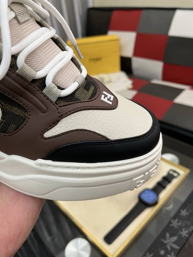 调工厂P价 男装男鞋 运动原单 Fendi 芬迪经典舒适男士,这款复杂的运动鞋是由柔软的小牛皮真皮内里原版超轻橡胶材质粗纹大底...