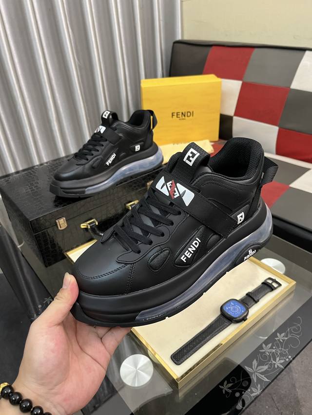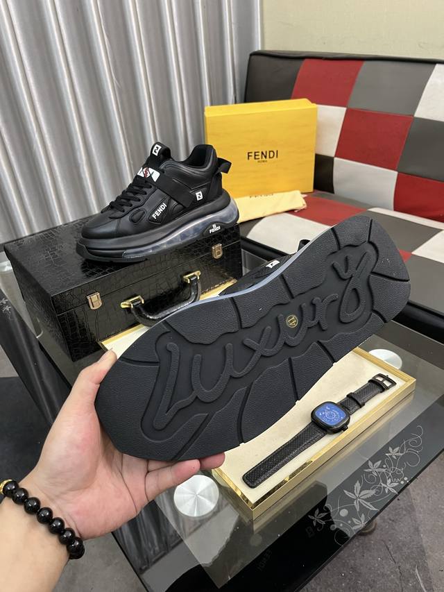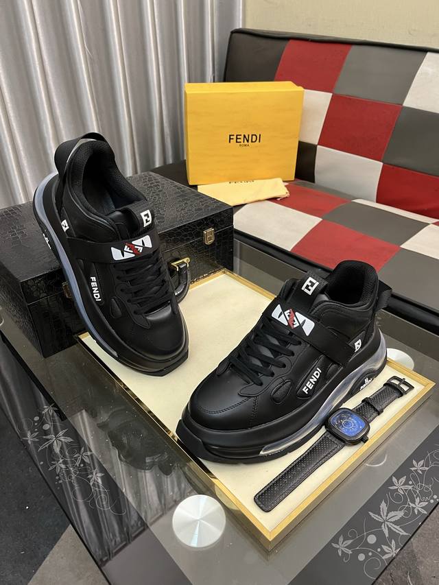 出厂价Pp: Fendi 芬迪经典舒适男士,这款复杂的运动鞋是由柔软的小牛皮真皮内里原版超轻橡胶材质粗纹大底 这种独特的轻薄风格适合这个季节的随意而精致的感性,上脚舒适自然 秋冬休闲出行日常款!38-442色可选