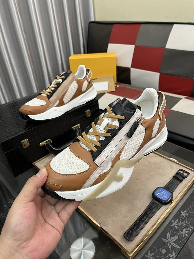 出厂价Pp: Fendi 芬迪 男士最新款休闲鞋!专柜同步上市!原版一比一复刻。内里采用头层顶级羊皮,原版原厂特供橡胶大底。引领时尚新概念。配码:38-44 D
