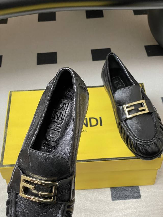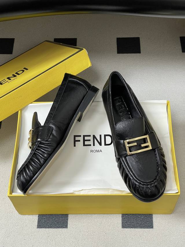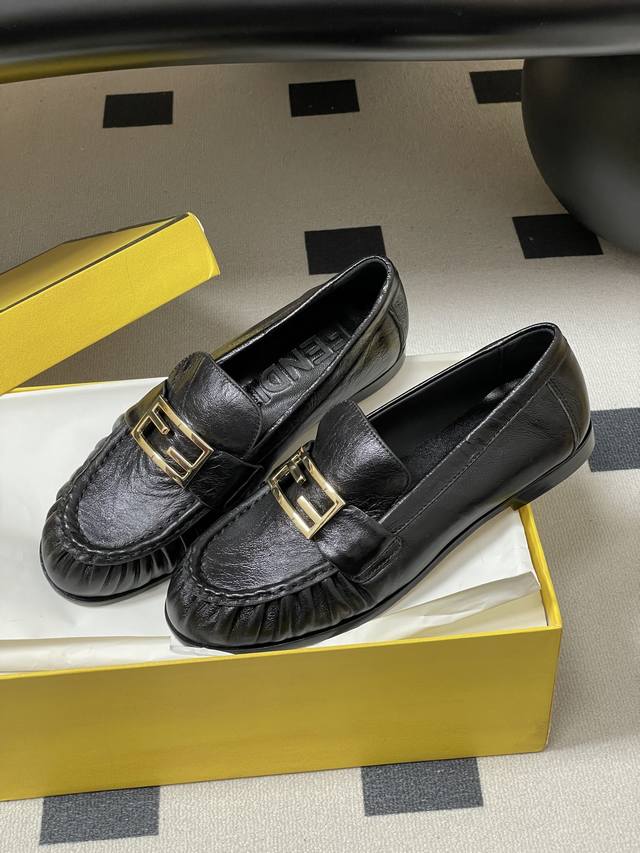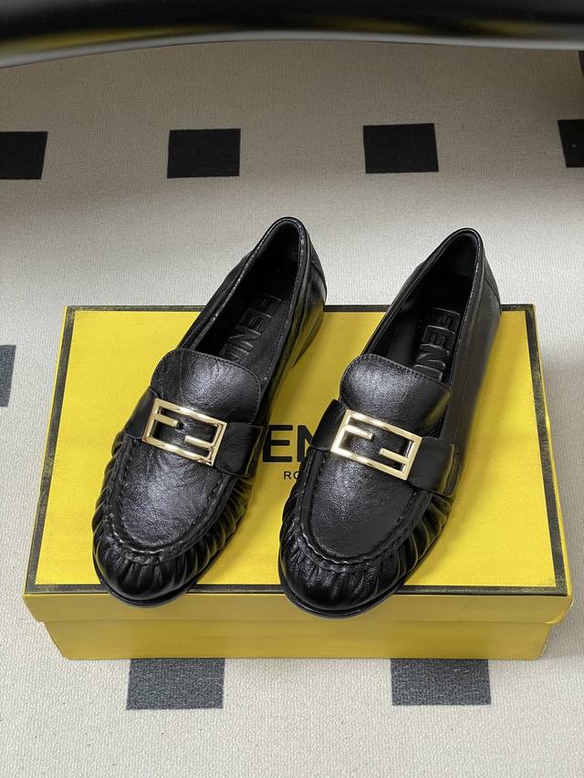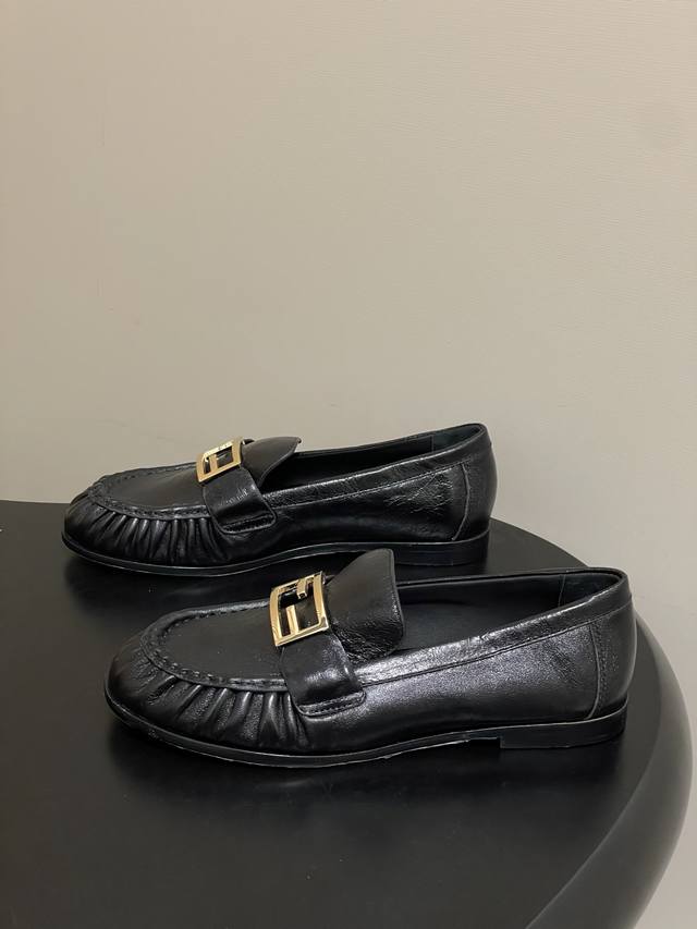 FFF 工厂P价 女装女鞋 运动原单 DDD 2026春夏新款Fendi芬迪 Baguette乐福鞋 穆勒鞋系列 Ff扣褶皱圆头老钱风乐福鞋复古包头穆勒半拖鞋 DDD 圆头乐福鞋,鞋面饰有Ff Baguette配饰。牛皮革材质。褶皱鞋头盖,柔韧环绕式造型。防滑橡胶镶饰皮革鞋底。 DDD 褶皱纹理+金色扣~低调又气质满满~有辨识度!!精致贵气 时髦 独特又迷人 DDD 西装裤、裙装、牛仔裤都能轻松搭配~舒适又时髦~巨高级 老钱风 必备单品 DDD 鞋面:牛油皮 羊猄皮 马毛 DDD 内里垫脚:羊皮 DDD