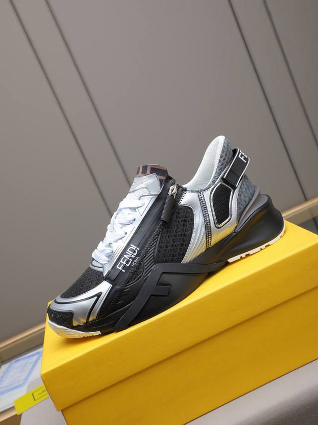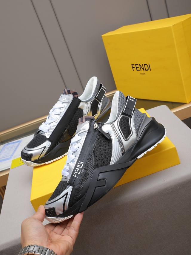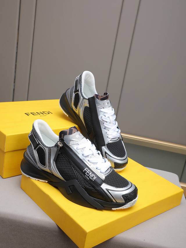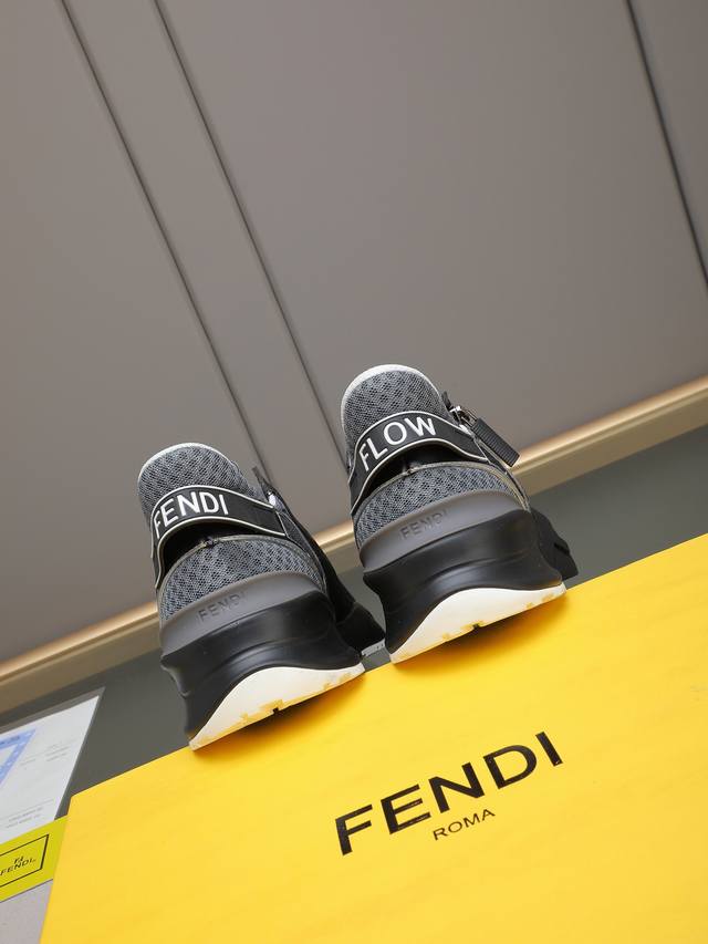 新品Fd休闲运动鞋,波浪形鞋底刻有F字样。鞋跟饰有凸纹压花Fend* Flow字样。鞋面牛皮接拼独特创新!超轻耐磨Eva鞋底,整体轻便舒适!Size:39-44