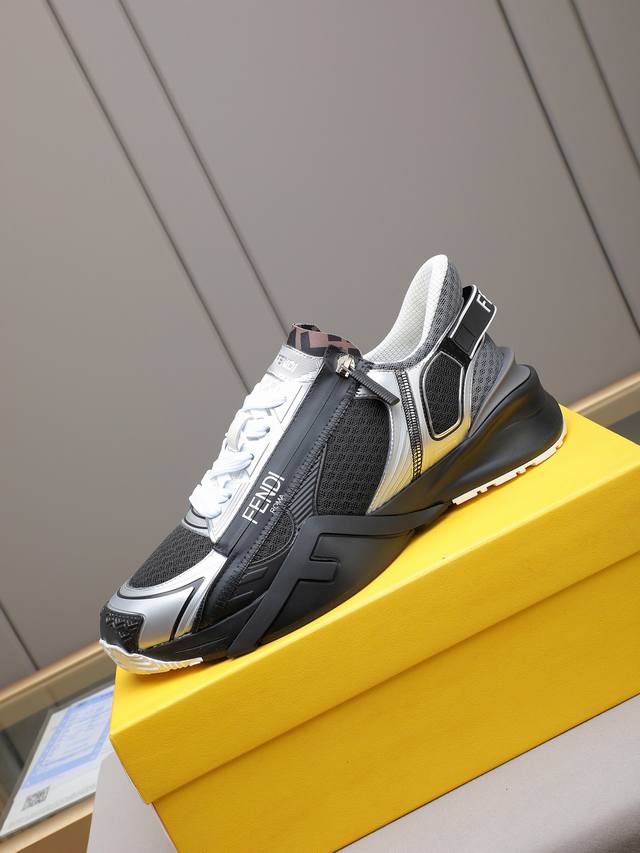 新品Fd休闲运动鞋,波浪形鞋底刻有F字样。鞋跟饰有凸纹压花Fend* Flow字样。鞋面牛皮接拼独特创新!超轻耐磨Eva鞋底,整体轻便舒适!Size:39-44