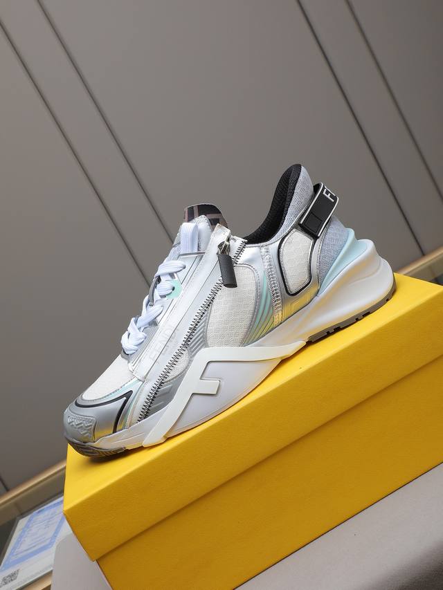 出厂价p Fendi 芬迪经典舒适男士,这款复杂的运动鞋是由柔软的小牛皮真皮内里原版超轻橡胶材质粗纹大底...