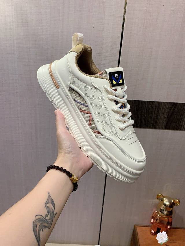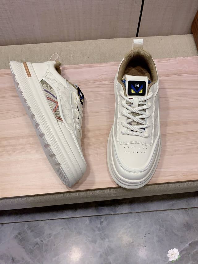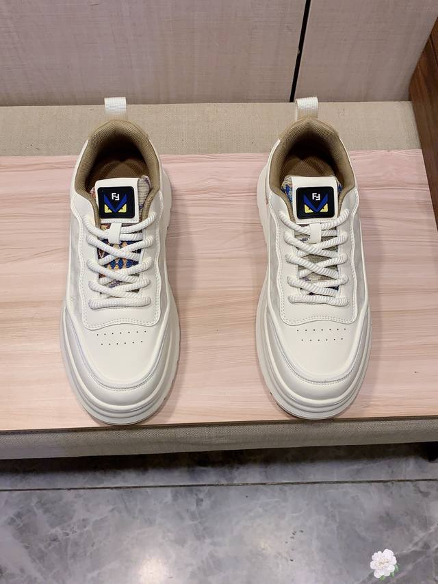 新款: 厂价 芬迪Fendi* 最新爆款休闲鞋,顶端品牌 奢侈~代购,顶级~质量。 鞋面選用进口透气牛皮搭配材质透气羊皮垫脚 精细做工。原版个性时尚柔软橡膠耐磨