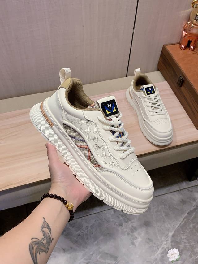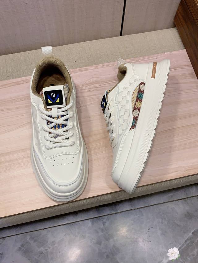 出厂 高版本 最新厚底版面 Fendi芬迪2024新款厚底板鞋休闲运动鞋 Fd 厚底match 升级新款 全皮面拼接 新鲜血液注入加ff复古的设计...