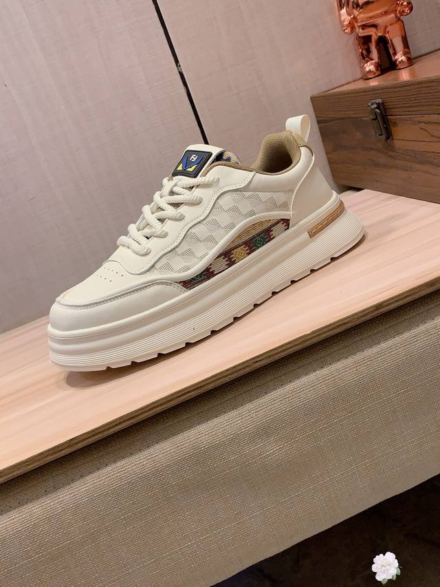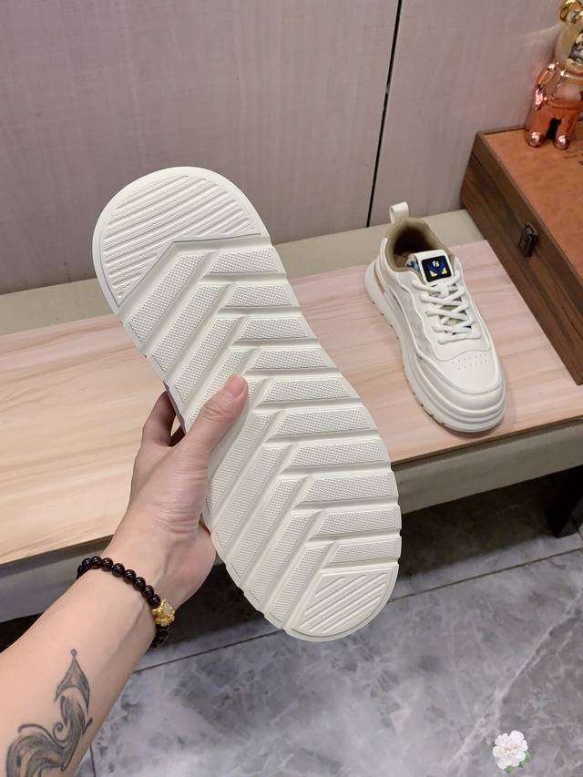 新款: 厂价 芬迪Fendi* 最新爆款休闲鞋,顶端品牌 奢侈~代购,顶级~质量。 鞋面選用进口透气牛皮搭配材质透气羊皮垫脚 精细做工。原版个性时尚柔软橡膠耐磨防滑大底,上脚轻巧舒适,实物拍摄實物更好看,004:码: 38-44,2色入选