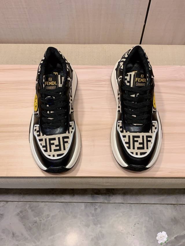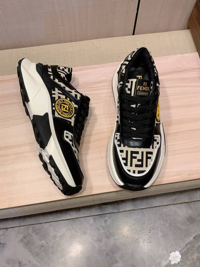 新款: 厂价 芬迪Fendi* 最新爆款休闲鞋,顶端品牌 奢侈~代购,顶级~质量。 鞋面選用进口透气牛皮搭配材质透气羊皮垫脚 精细做工。原版个性时尚柔软橡膠耐磨