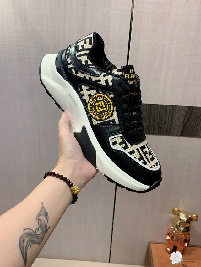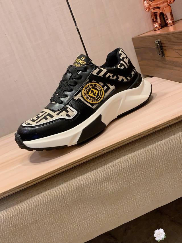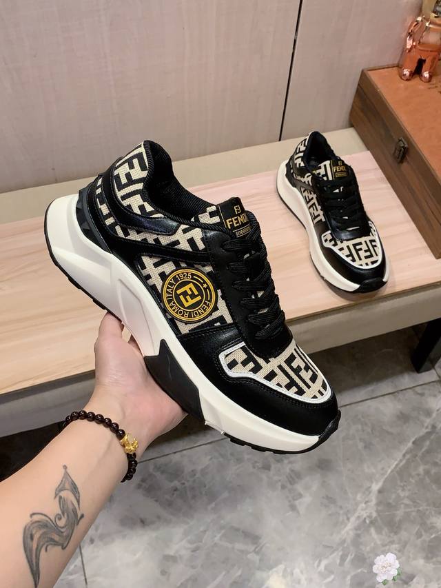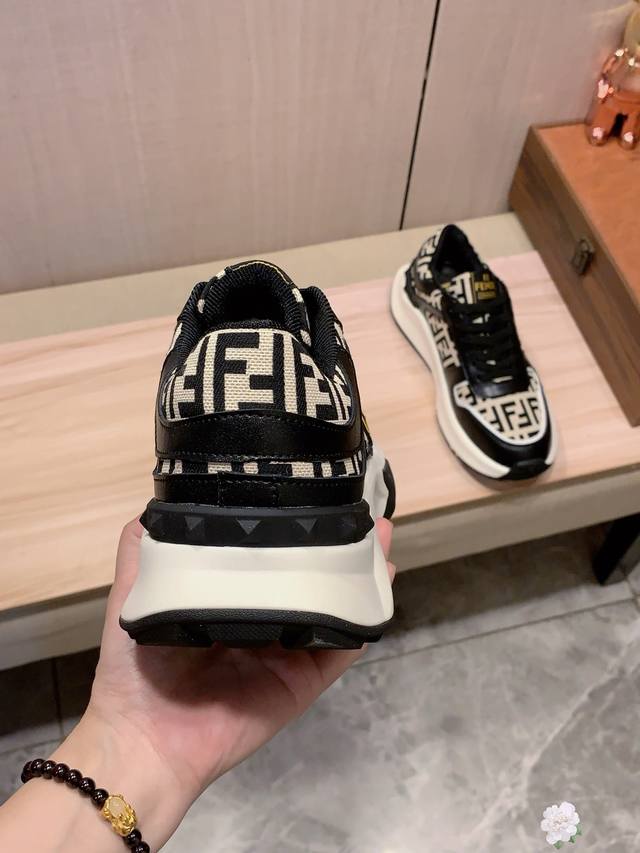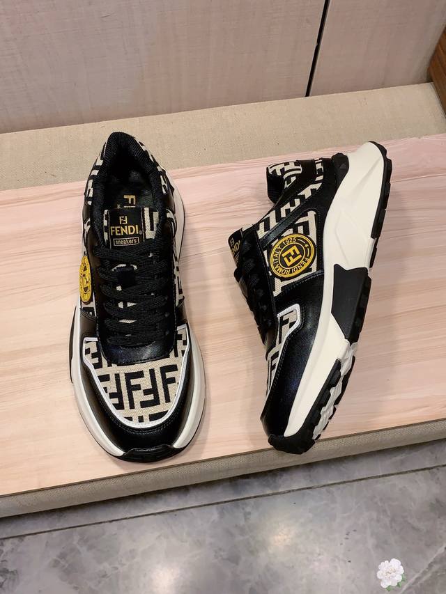 新款: 厂价 芬迪Fendi* 最新爆款休闲鞋,顶端品牌 奢侈~代购,顶级~质量。 鞋面選用进口透气牛皮搭配材质透气羊皮垫脚 精细做工。原版个性时尚柔软橡膠耐磨防滑大底,上脚轻巧舒适,实物拍摄實物更好看,413:码: 38-44,4色入选