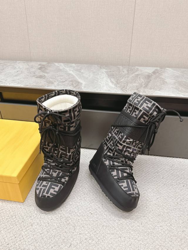 特价 Fendi芬迪秋冬新款羽绒靴滑雪鞋 这款滑雪鞋今年非常爆,Ff元素搭配非常时尚 超酷个性非常强!潮派炸街!为数不多的超大牌滑雪鞋 感级感满满 各大网红明星