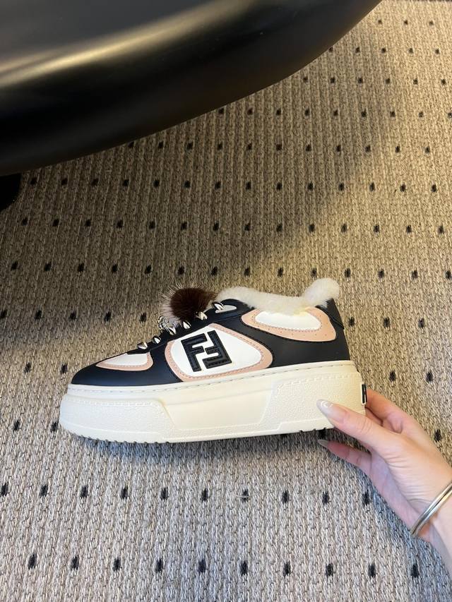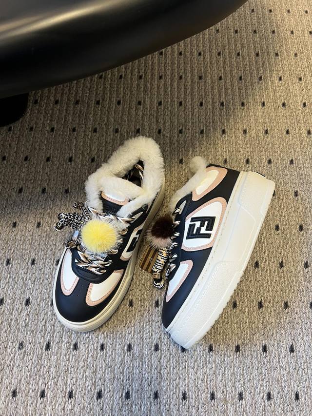 顶级品质 Fend*25Ss加绒厚底松糕鞋运动休闲鞋 设计鞋型是厚底松糕款,增高显腿长,同时鞋身线条宽松,是当下流行的“面包鞋”慵懒感;搭配可拆卸装饰,可以自由