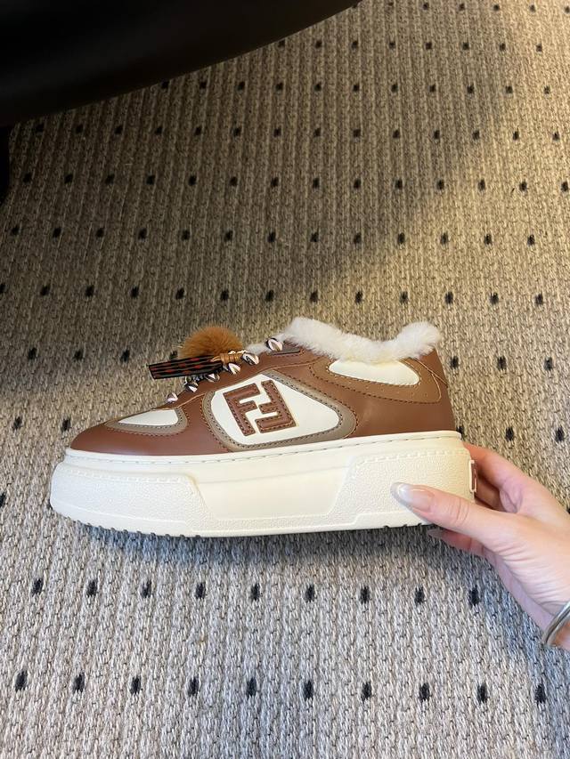 顶级品质 Fend*25Ss加绒厚底松糕鞋运动休闲鞋 设计鞋型是厚底松糕款,增高显腿长,同时鞋身线条宽松,是当下流行的“面包鞋”慵懒感;搭配可拆卸装饰,可以自由