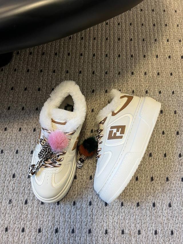 顶级品质 Fend*25Ss加绒厚底松糕鞋运动休闲鞋 设计鞋型是厚底松糕款,增高显腿长,同时鞋身线条宽松,是当下流行的“面包鞋”慵懒感;搭配可拆卸装饰,可以自由