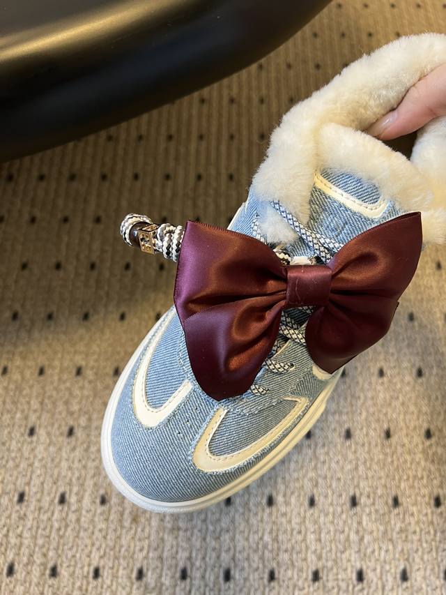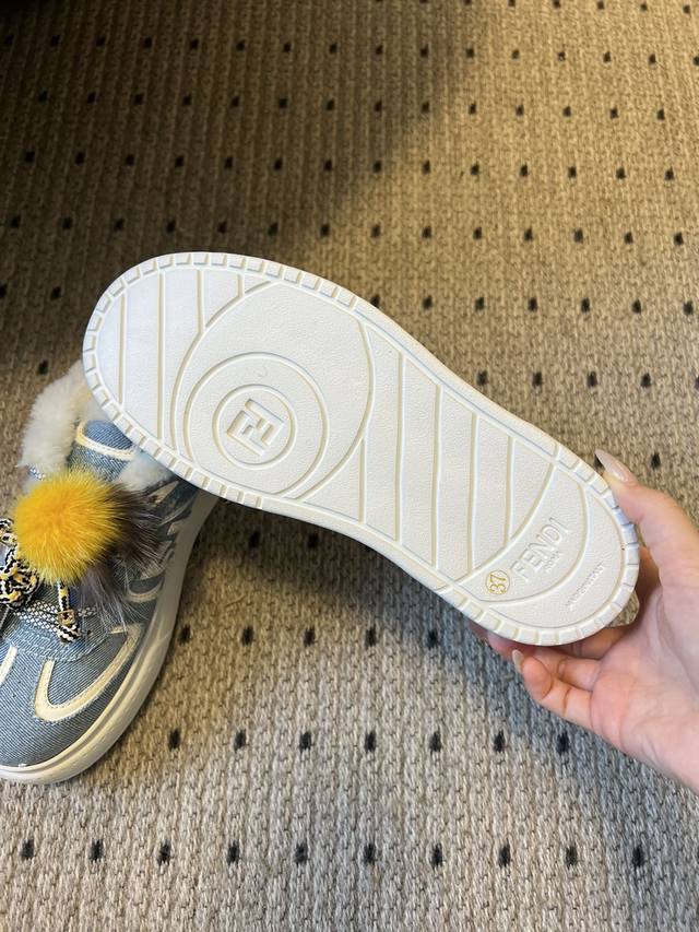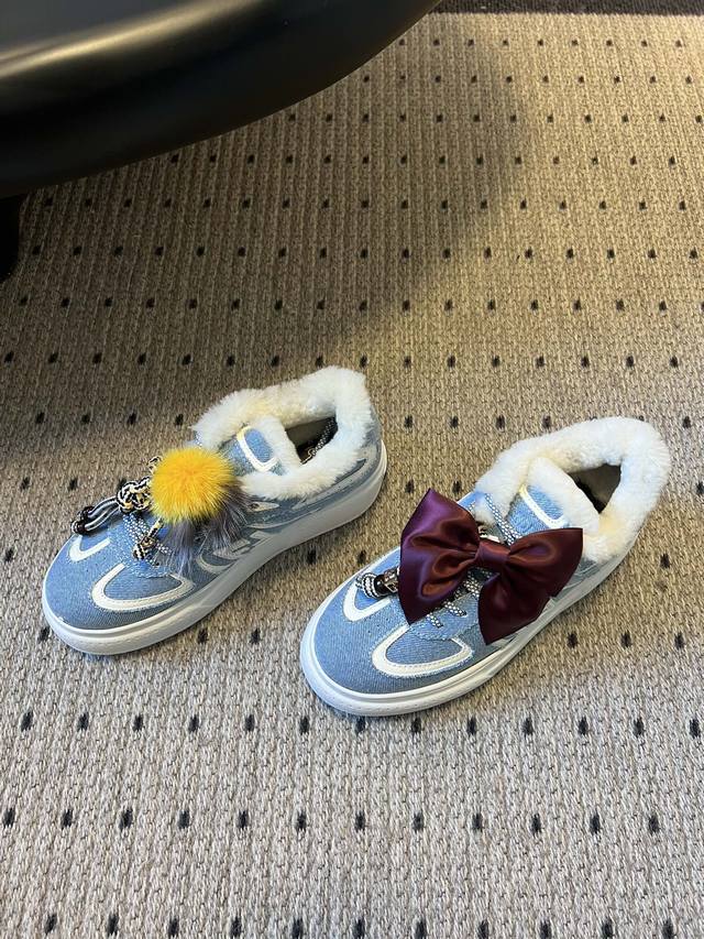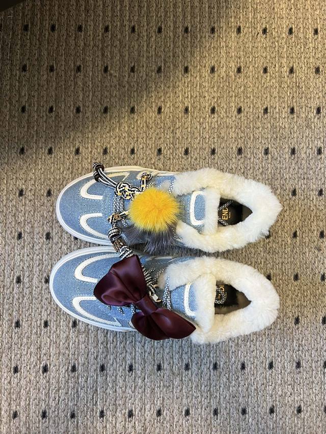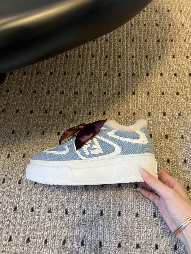 顶级品质 DDD Fend*25Ss加绒厚底松糕鞋运动休闲鞋 DDD 设计鞋型是厚底松糕款,增高显腿长,同时鞋身线条宽松,是当下流行的“面包鞋”慵懒感;搭配可拆卸装饰,可以自由组合风格,甜酷 温柔切换灵活;采用皮质牛仔拼接,质感挺括耐穿; DDD 既保留了奢侈品牌的精致感,又通过毛绒、蝴蝶结元素增加了“甜妹”属性,适合日常休闲、轻通勤等场景,搭配裙子 牛仔裤都很出片。 DDD 鞋面:牛皮 DDD 内里:羊毛 DDD 大底:原版开模大底 DDD 增高:5Cm DDD Size :35-40码 40码定制不退