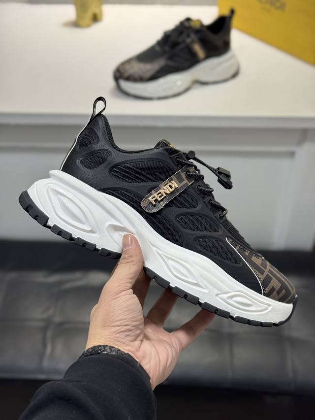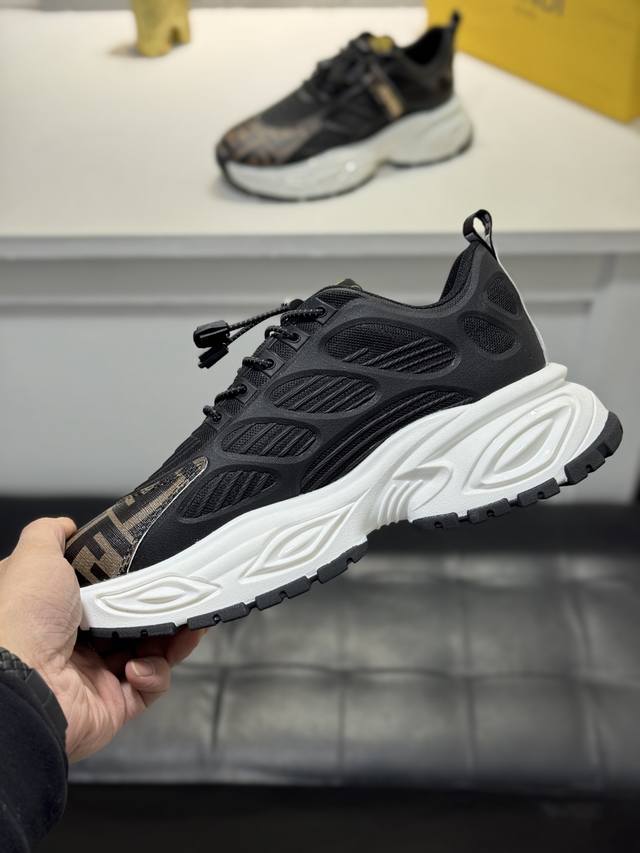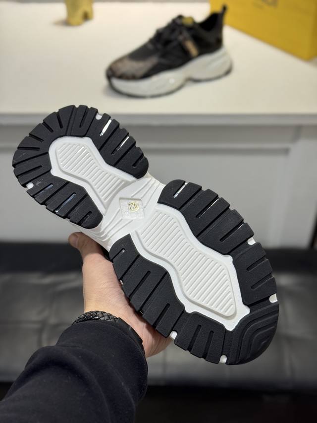 出厂价p Fendi 芬迪经典舒适男士,这款复杂的运动鞋是由柔软的小牛皮真皮内里原版超轻橡胶材质粗纹大底...