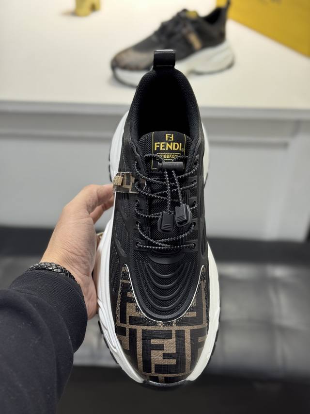 Fendi*芬迪顶级代购 男士专柜新款 原厂配置、意大利进口牛皮拼接,网布内里,内增高,鞋底:原厂特供原版底超级舒适,原厂跟单货 高品质,二色可选,可随意进出专