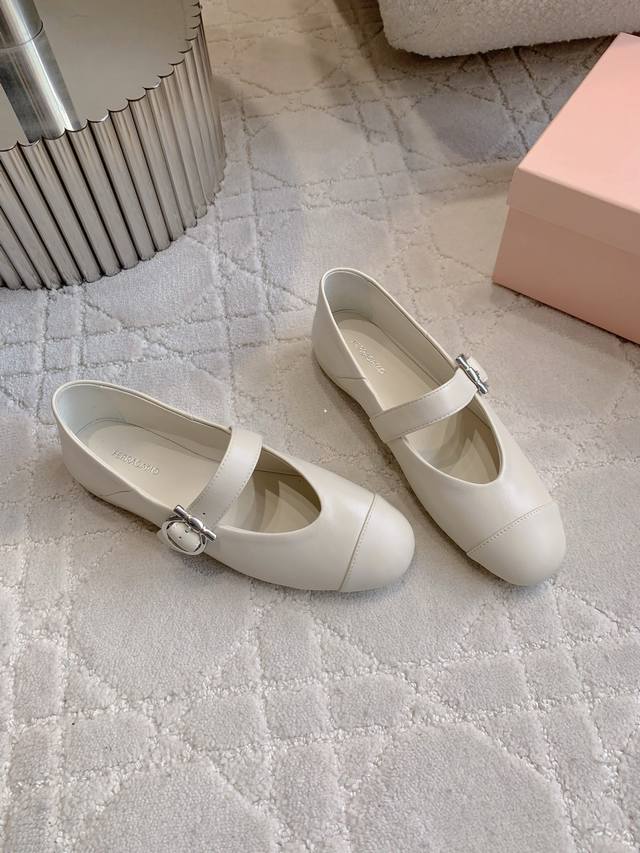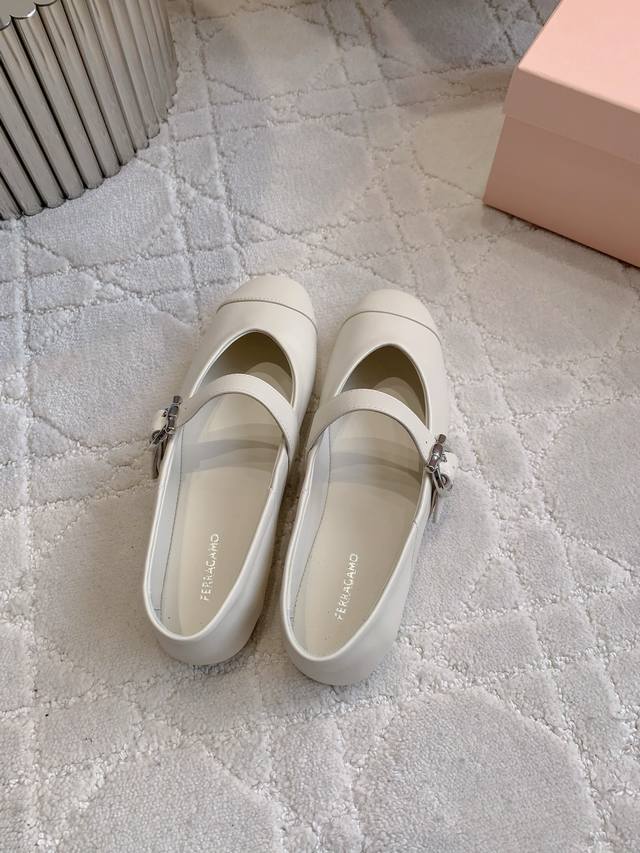 出厂价P Ferragam*新款平底玛丽珍鞋 后跟可踩脚 设计非常精致 每一个细节都充满了艺术感 软软的云朵脚感 颜值与舒适并存 鞋面超软小羊皮 Zp开模五金扣 内里垫脚羊皮 原版开模防滑大底 尺码35-39 34 40定做
